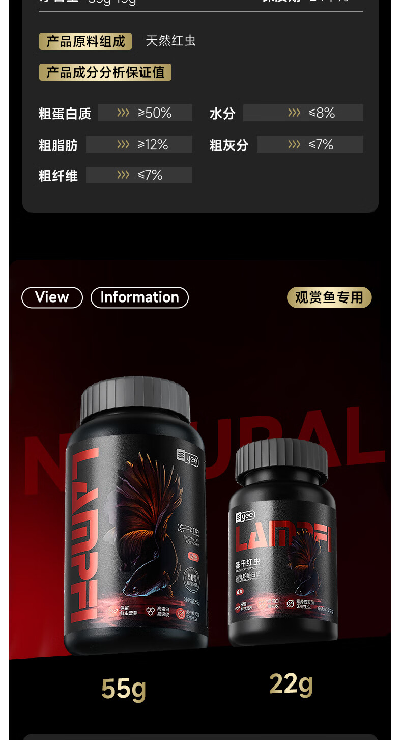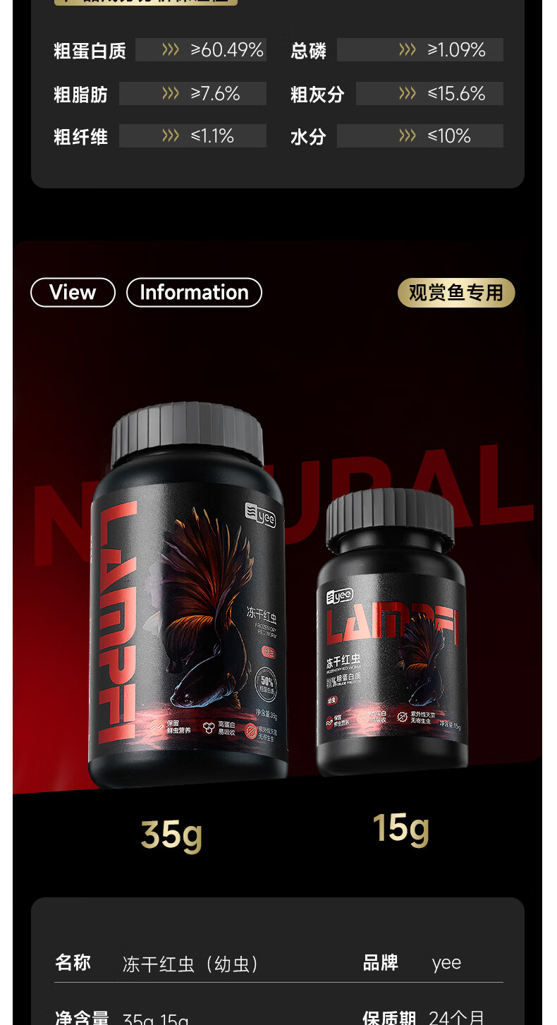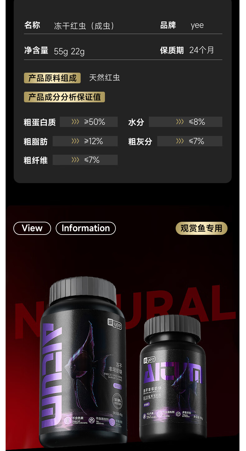 冻干红虫鱼食丰年虾块红线虫小型鱼金鱼孔雀灯鱼斗鱼饲料贴片 【大规格/更实惠】天然红丝虫500ML