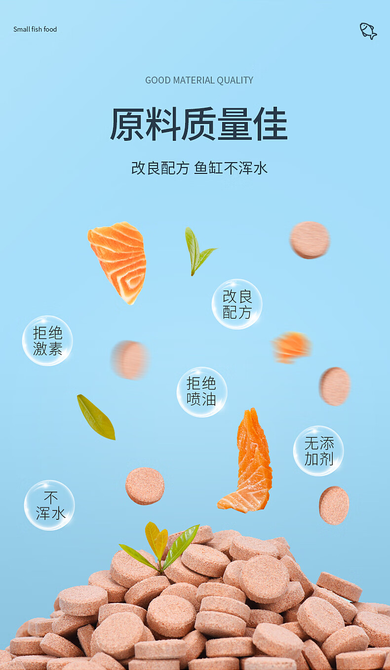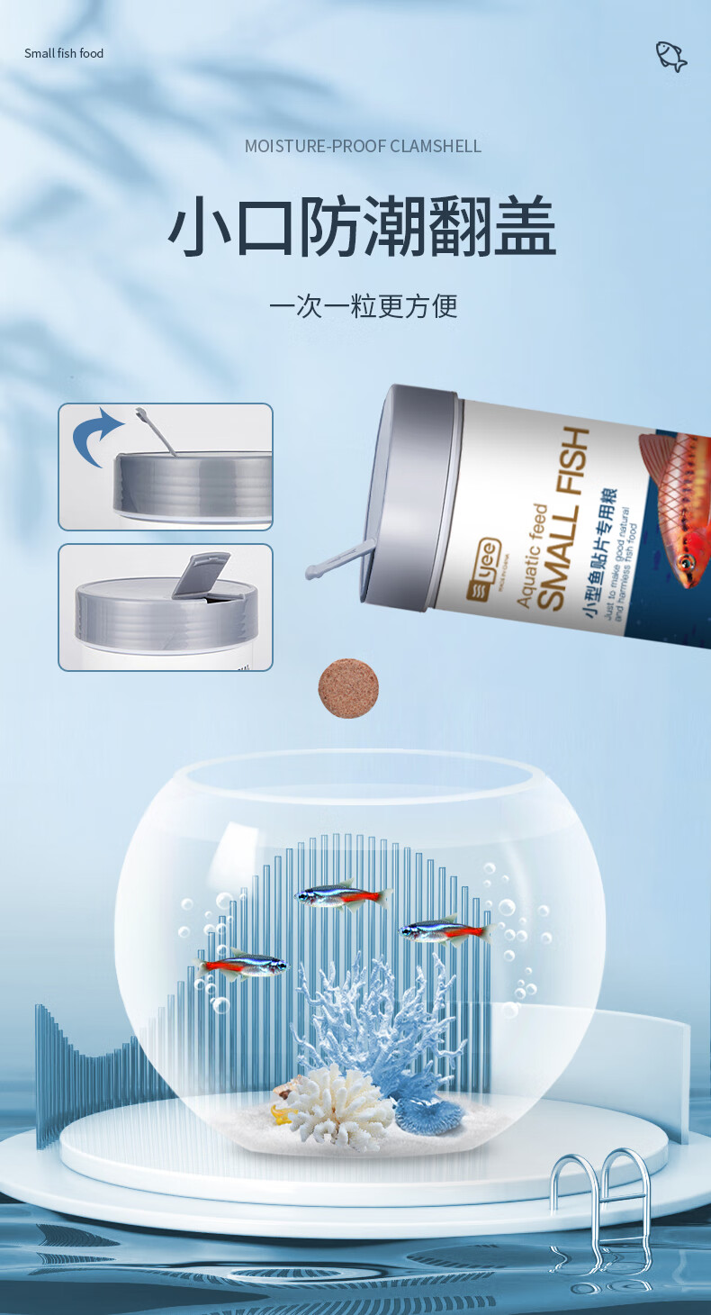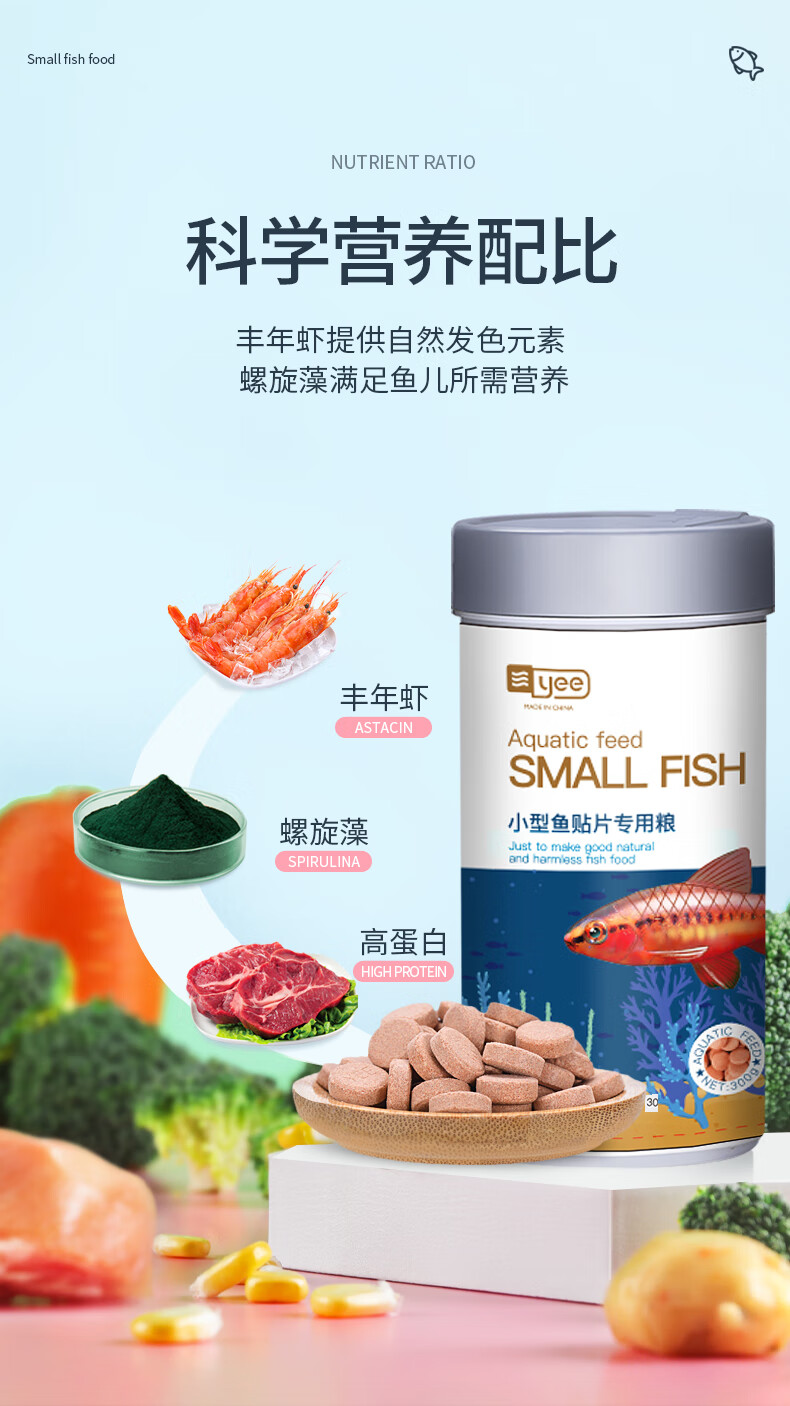 YEE小型鱼贴片鱼食孔雀鱼饲料热带鱼金鱼灯鱼饲料通用型小型鱼粮 【固色】丰年虾贴片260ml桶装(约150g)