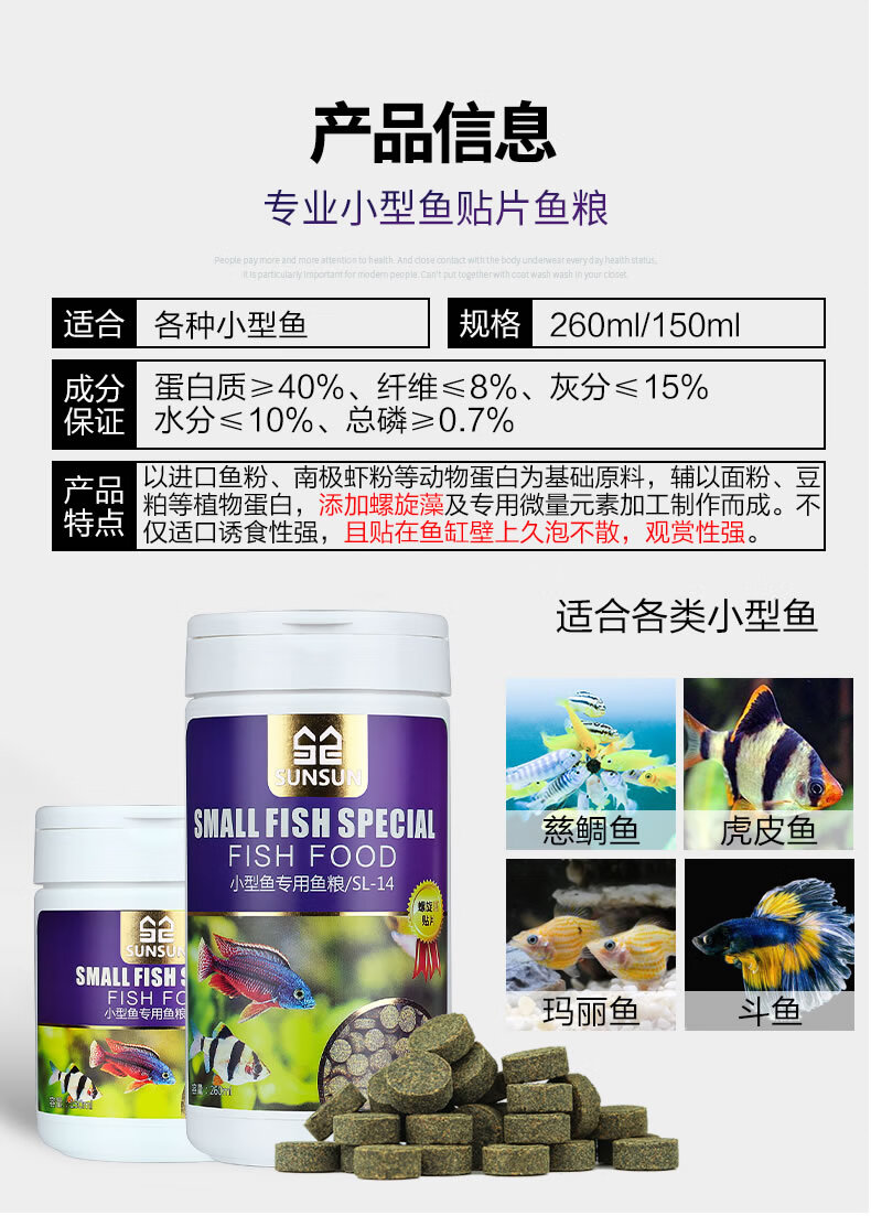 森森(SUNSUN)贴片饲料热带鱼斗鱼鱼粮孔雀鱼红绿灯通用型鱼食 丰年虾高营养贴片饲料150ML罐装