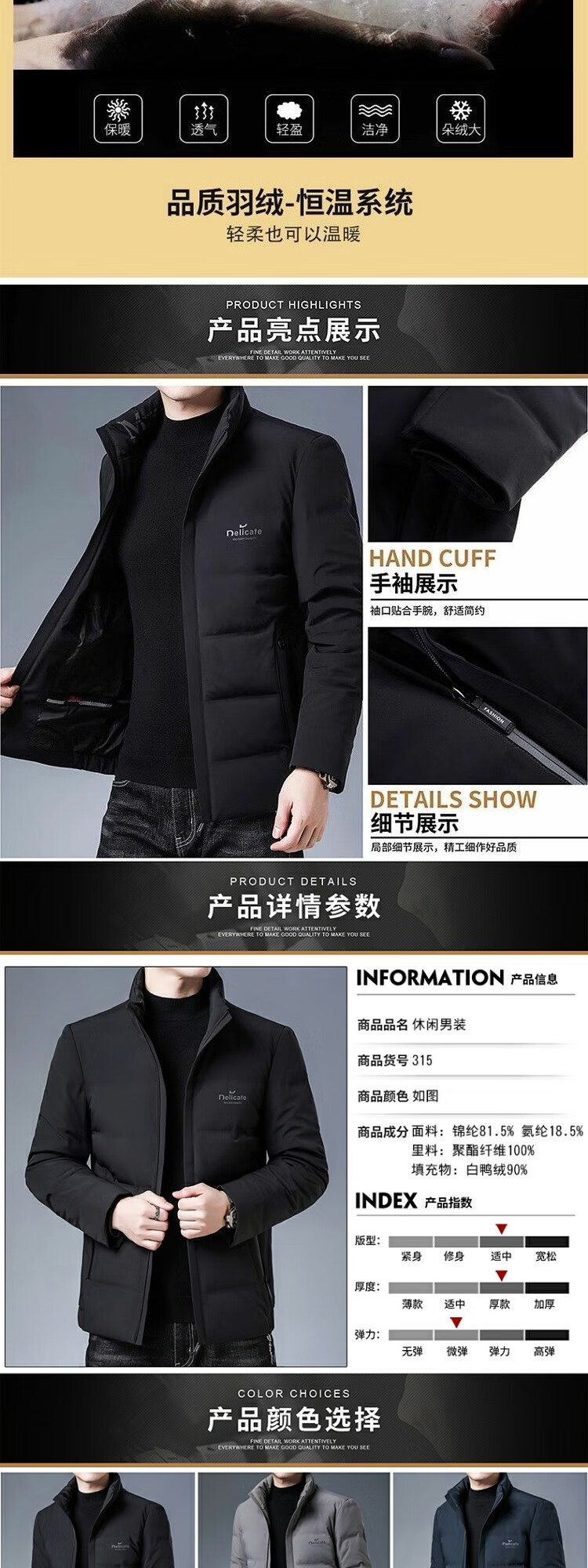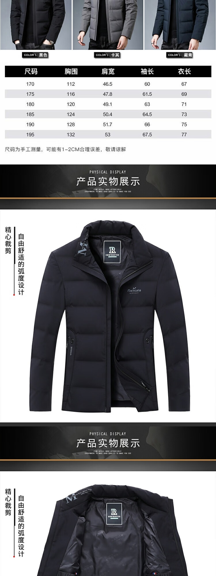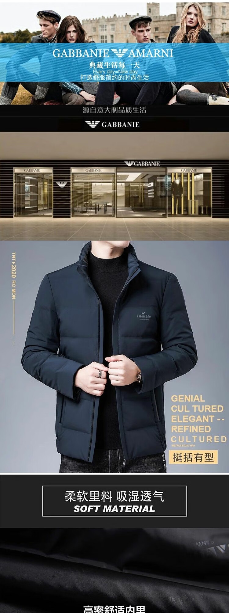阿玛尼阿玛尼高端立领羽绒服中年男士保暖白鸭绒冬装时尚加厚外套 GA/YR315黑色 白鸭绒 XL 175