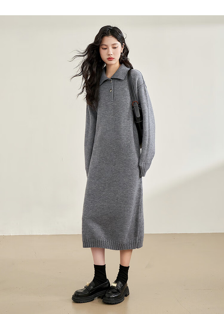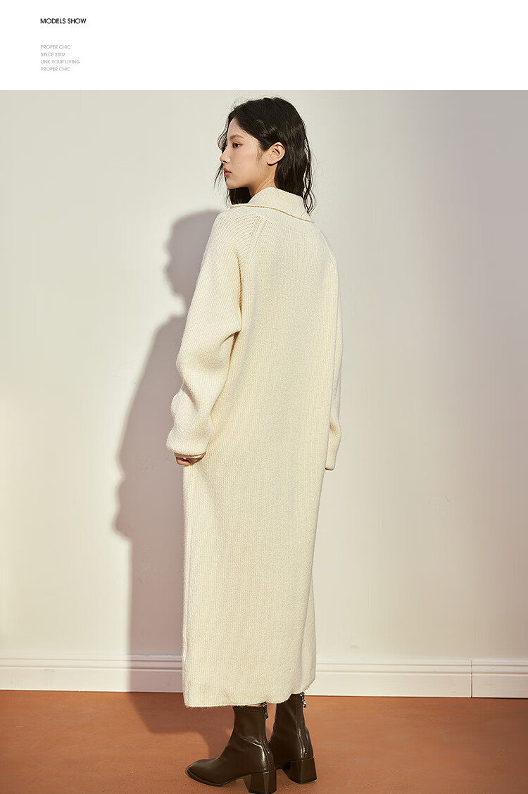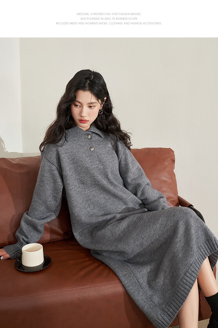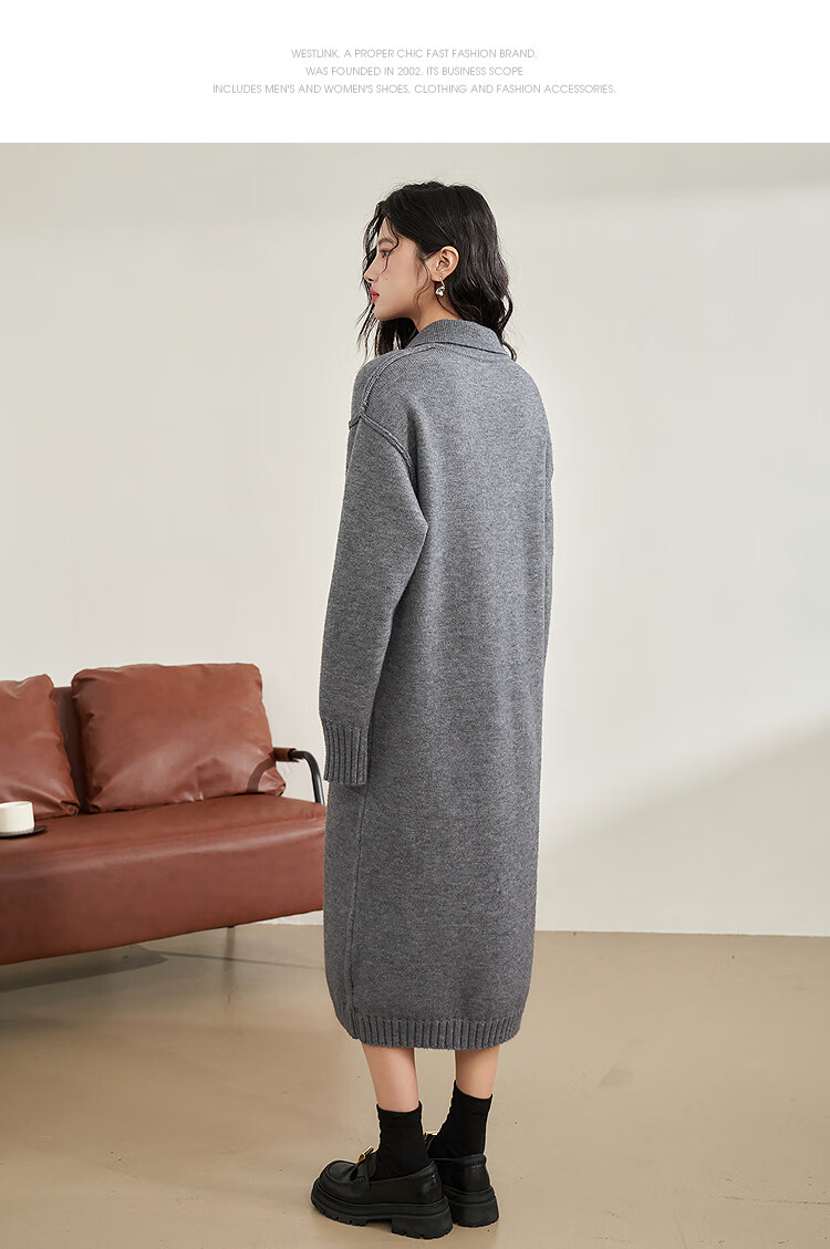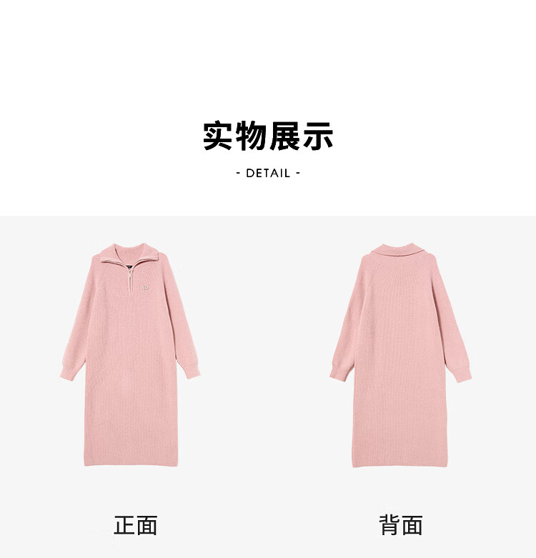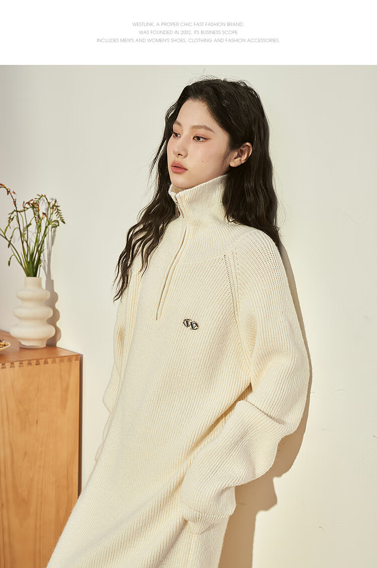 西遇法式长袖针织连衣裙女2025年春冬新款拉链设计感中长款打底裙 杏色 S