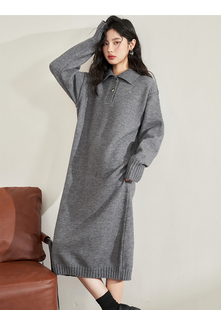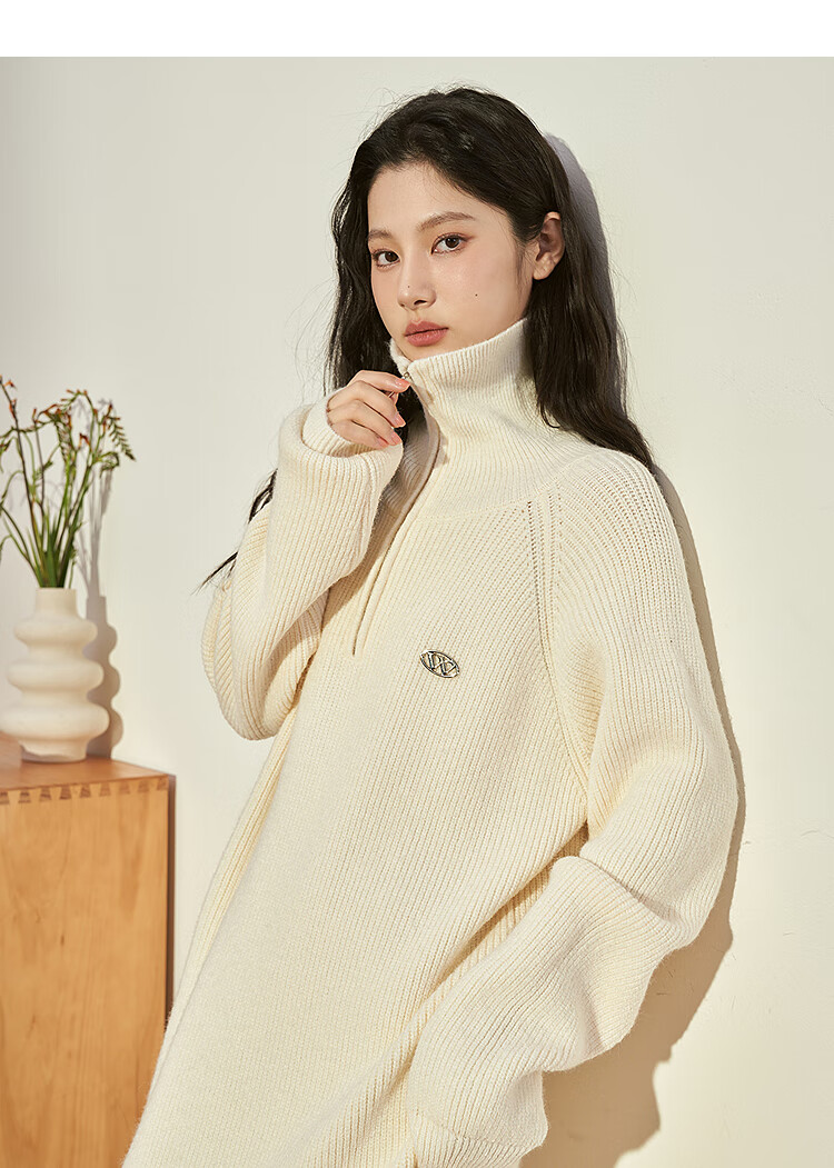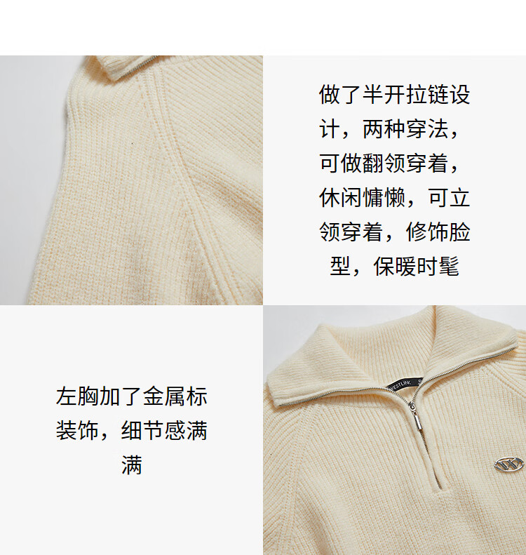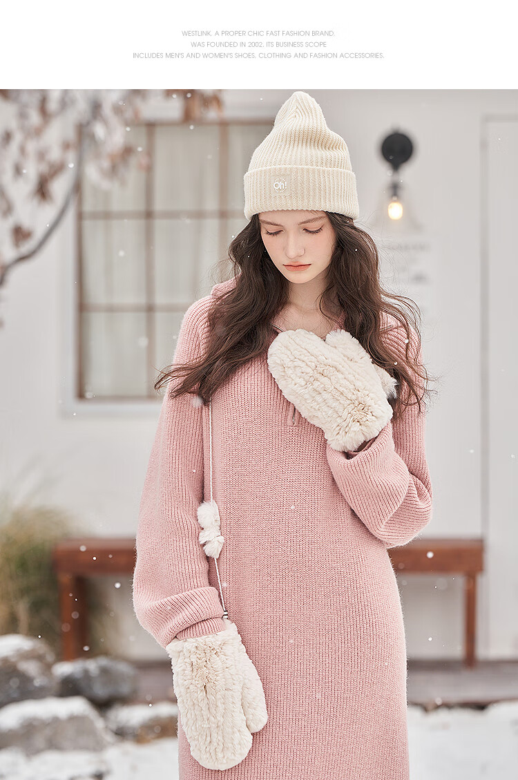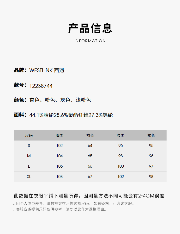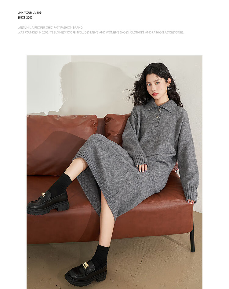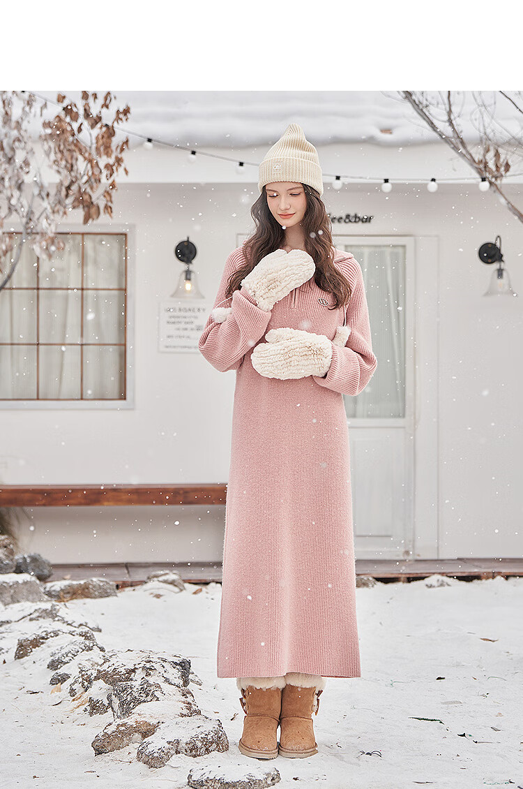 西遇法式长袖针织连衣裙女2025年春冬新款拉链设计感中长款打底裙 杏色 S