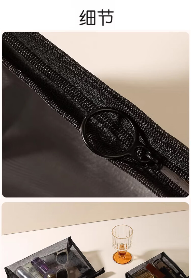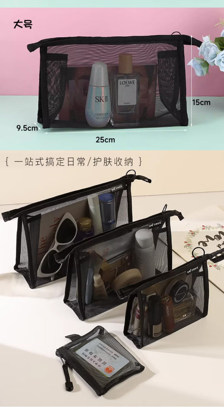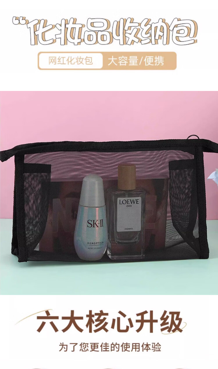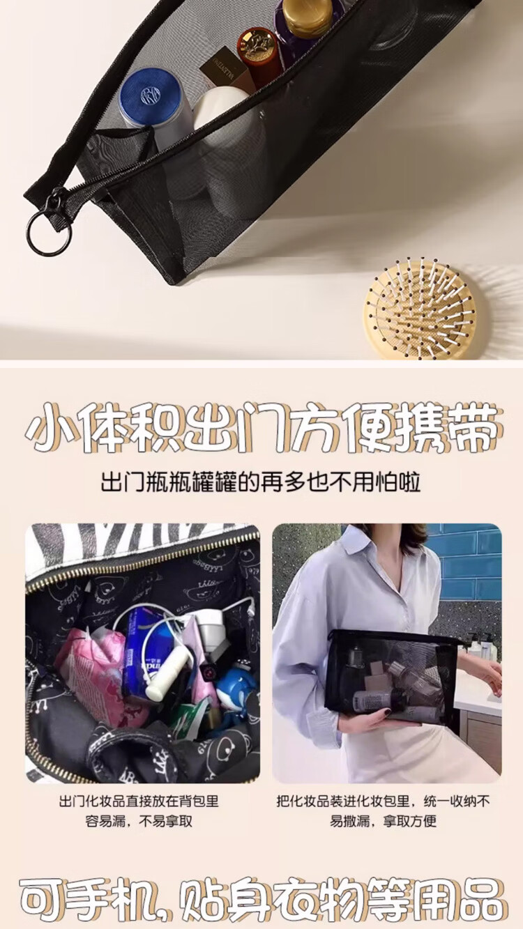 化妆包2025新款便携大容量透明网纱口红卡包女旅行随身收纳袋 黑色网纱包 大号