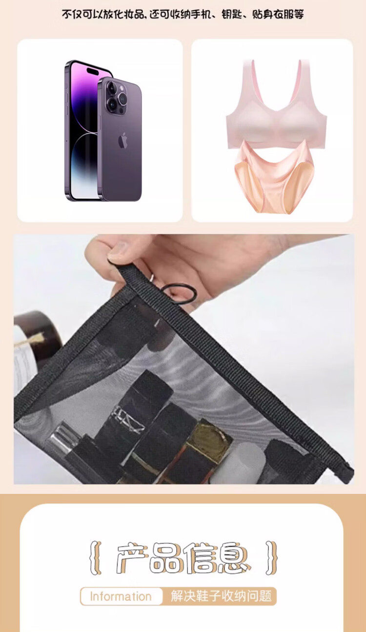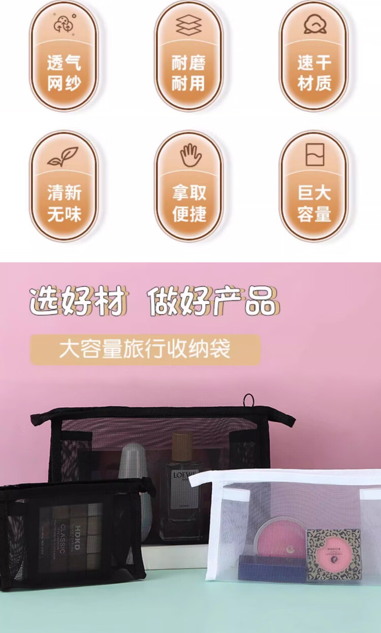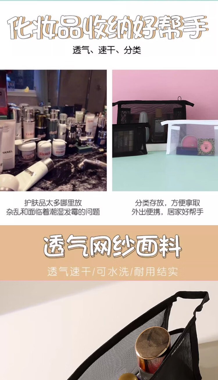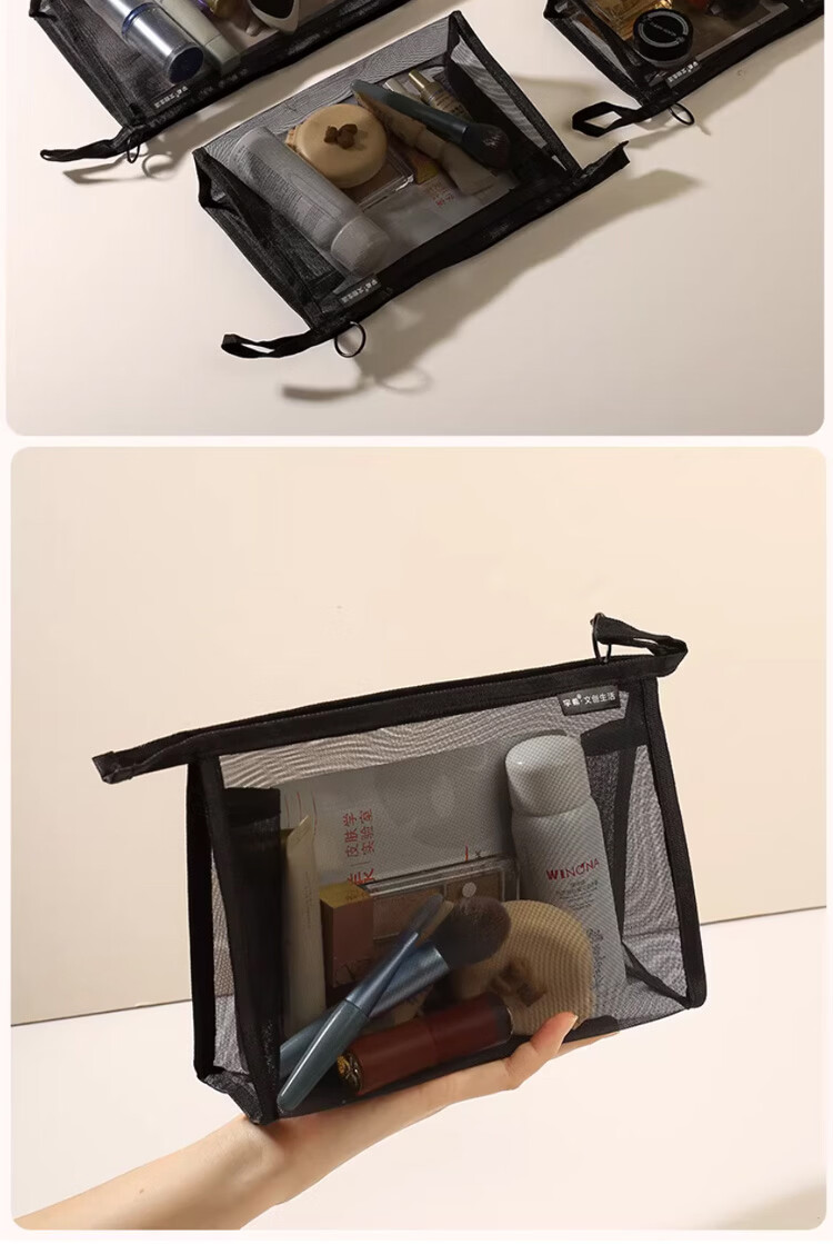 化妆包2025新款便携大容量透明网纱口红卡包女旅行随身收纳袋 黑色网纱包 大号