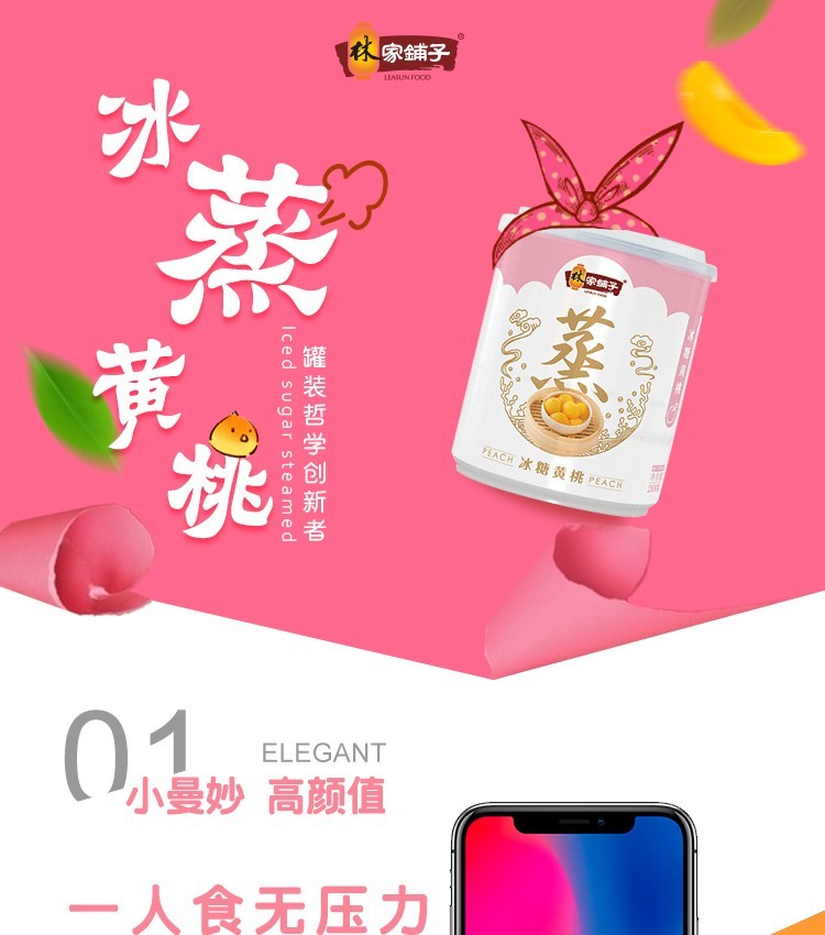 林家铺子 冰糖黄桃罐头200g 小罐即食 办公室零食 餐后甜点 200g*2罐