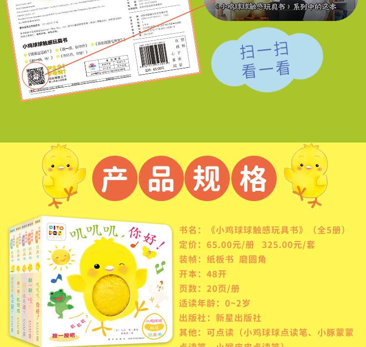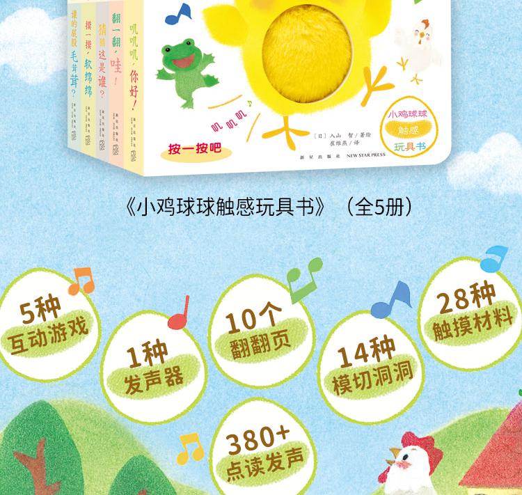 小鸡球球触感玩具书全5册 叽叽叽你好点读版纸板书触摸发声书翻翻书洞洞书认知书婴儿立体图画绘本 小鸡球球触感玩具书全5册