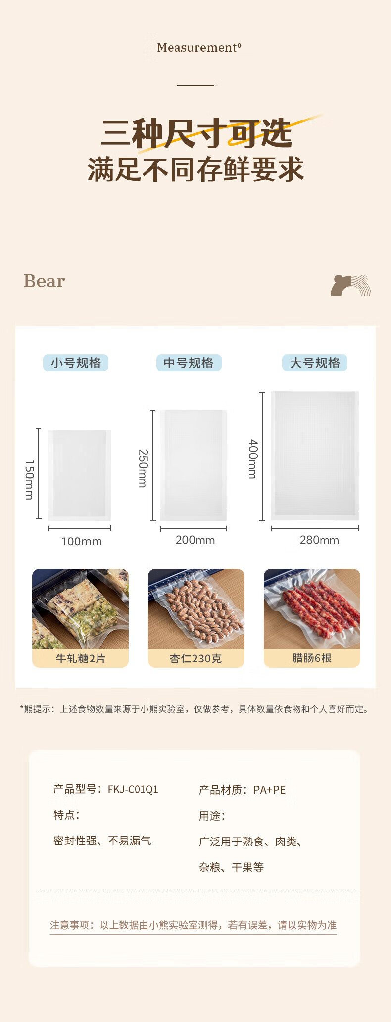 小熊(Bear)封口袋 真空袋20cm*25cm 50只装食品真空包装袋保鲜袋 C01Q1-S04