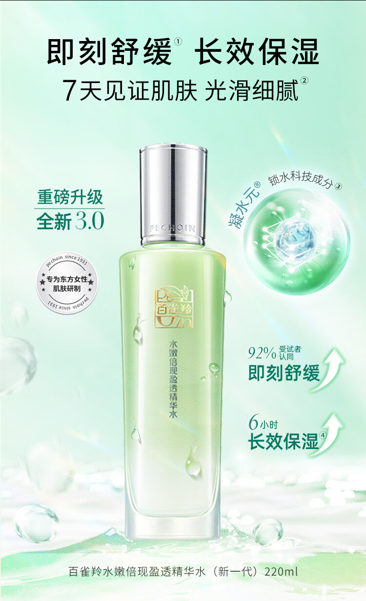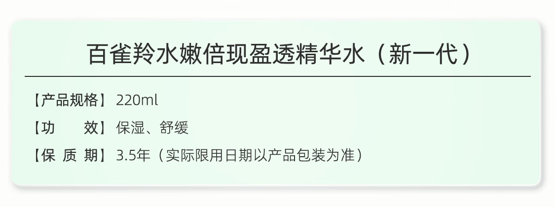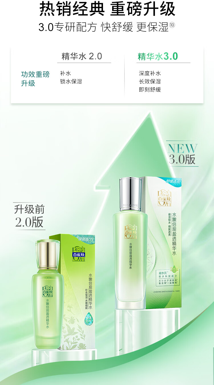 百雀羚爽肤水水嫩倍现盈透精华水220ml补水保湿舒缓收缩毛孔新年礼物
