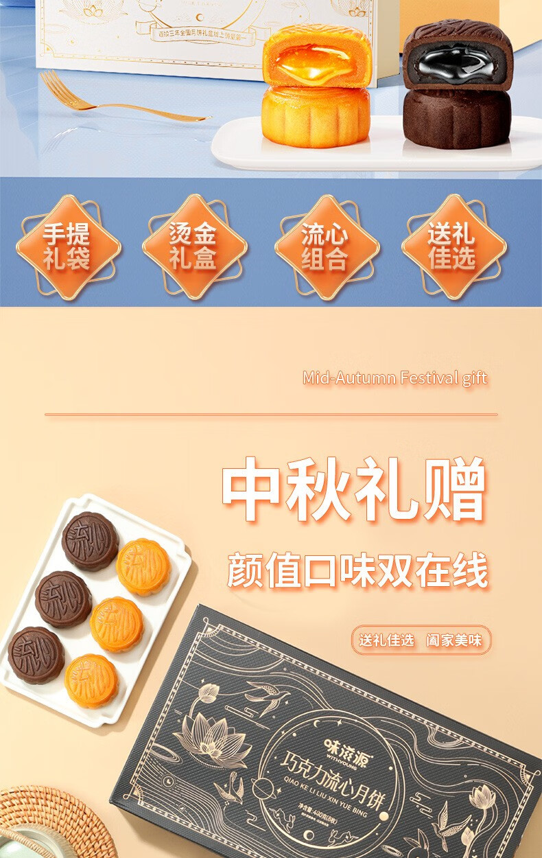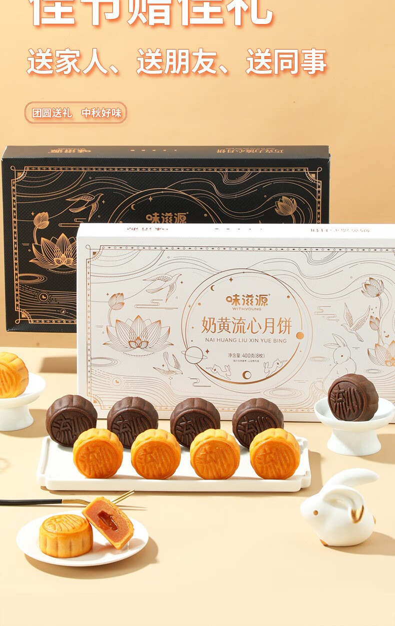张阿庆流心奶黄月饼巧克力味流心月饼礼盒装中秋节送礼稻香村官方旗舰店 巧克力流心月饼礼盒8粒400g