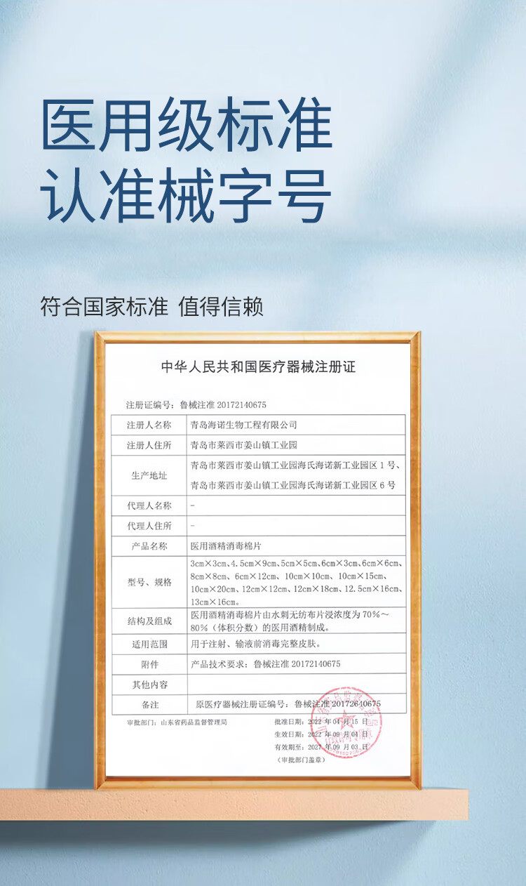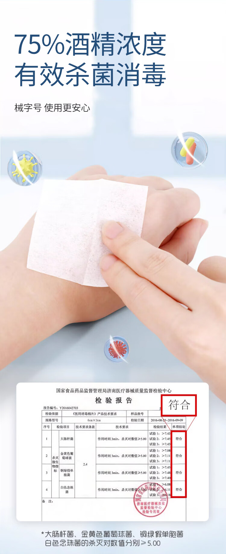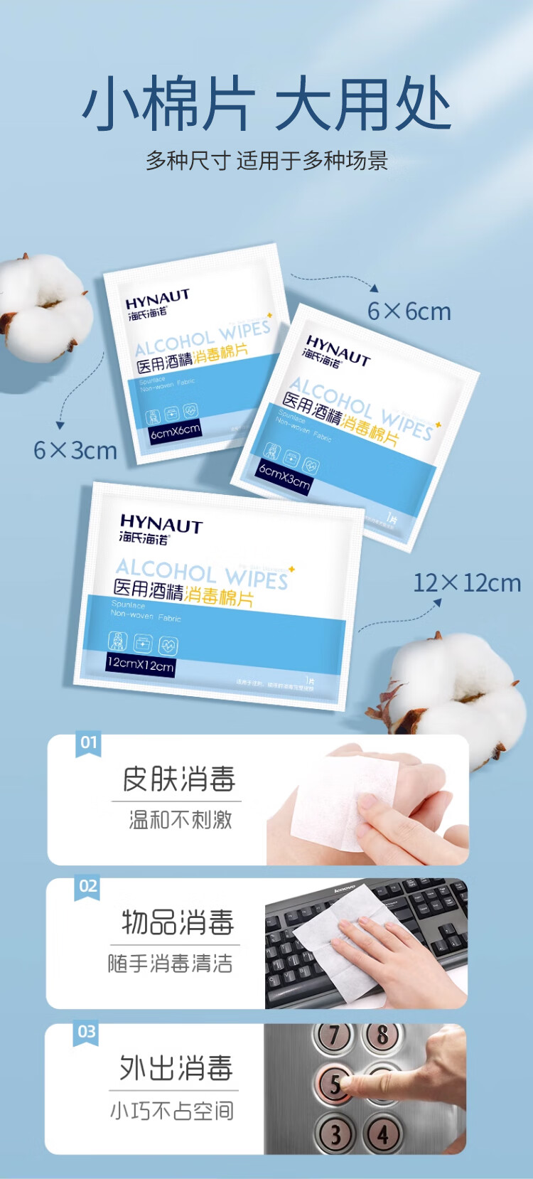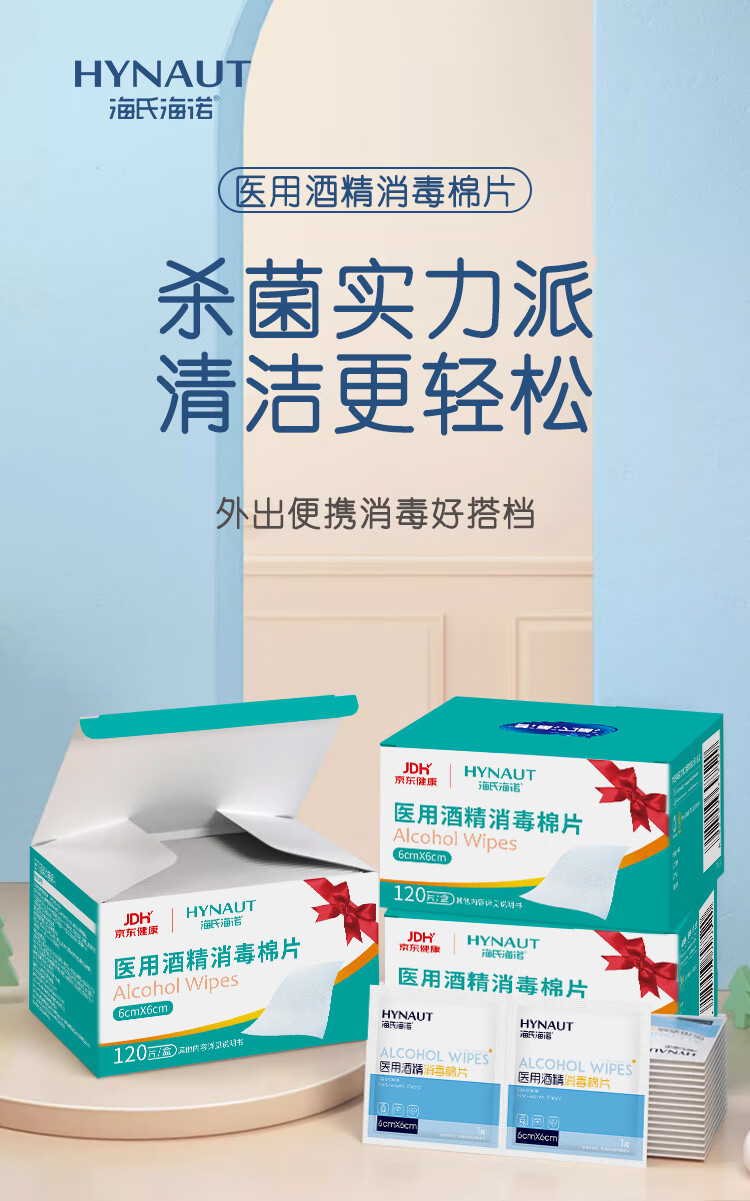 海氏海诺75%医用消毒湿巾棉片 酒精棉片 120片装 6*6cm