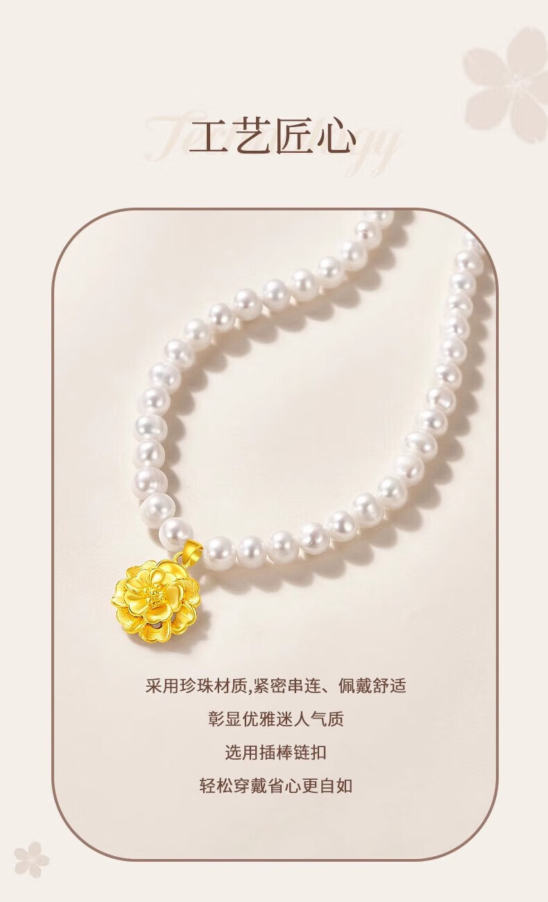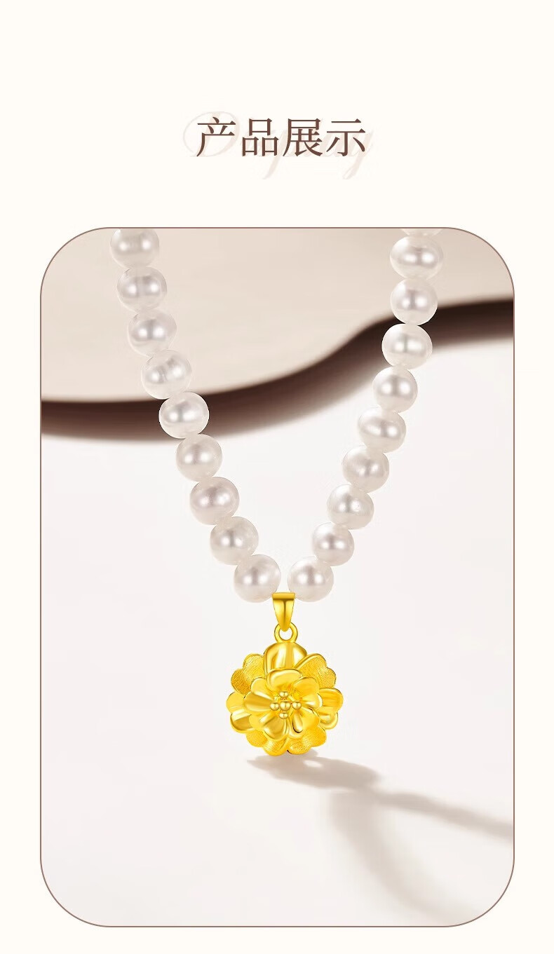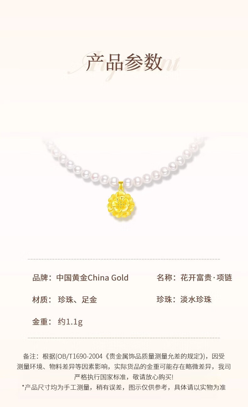 中国黄金(CHINA GOLD)牡丹花淡水珍珠项链女足金时尚吊坠新年实用生日礼物送老婆妈妈 足金牡丹花珍珠项链 约1.35g