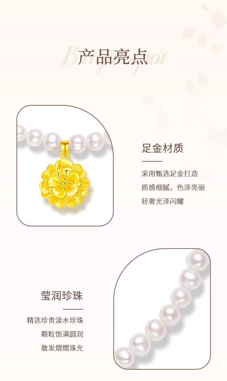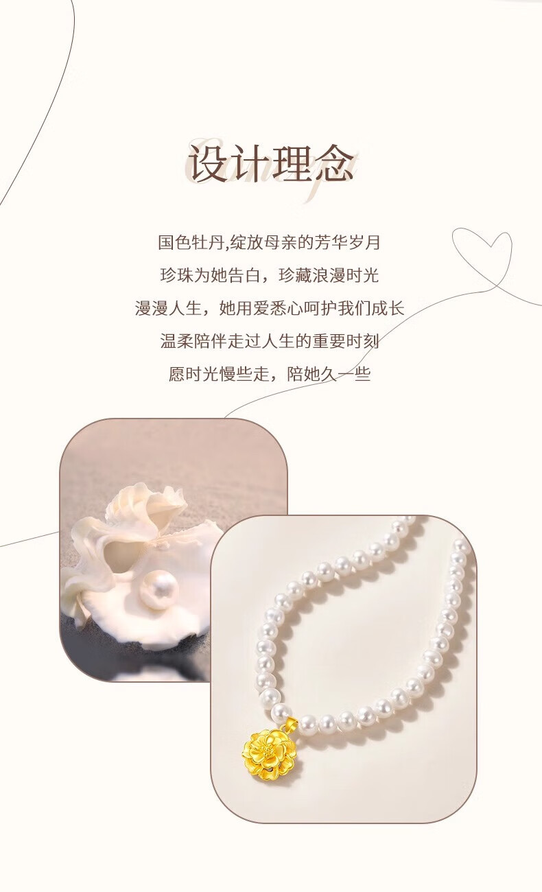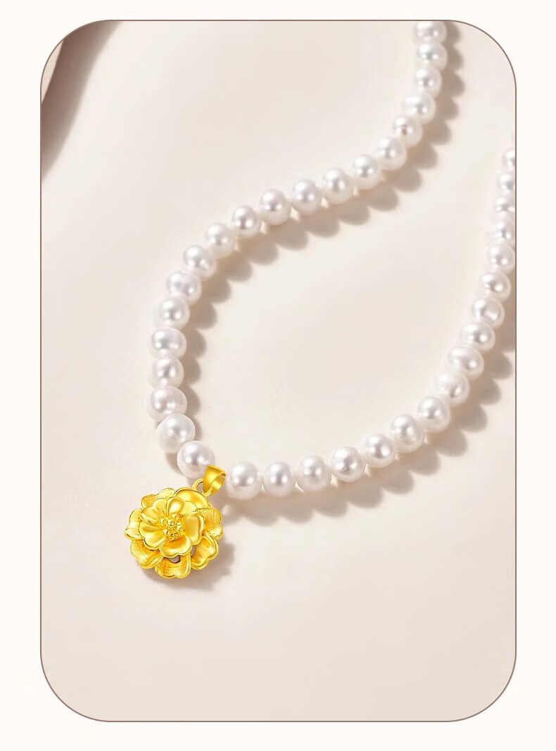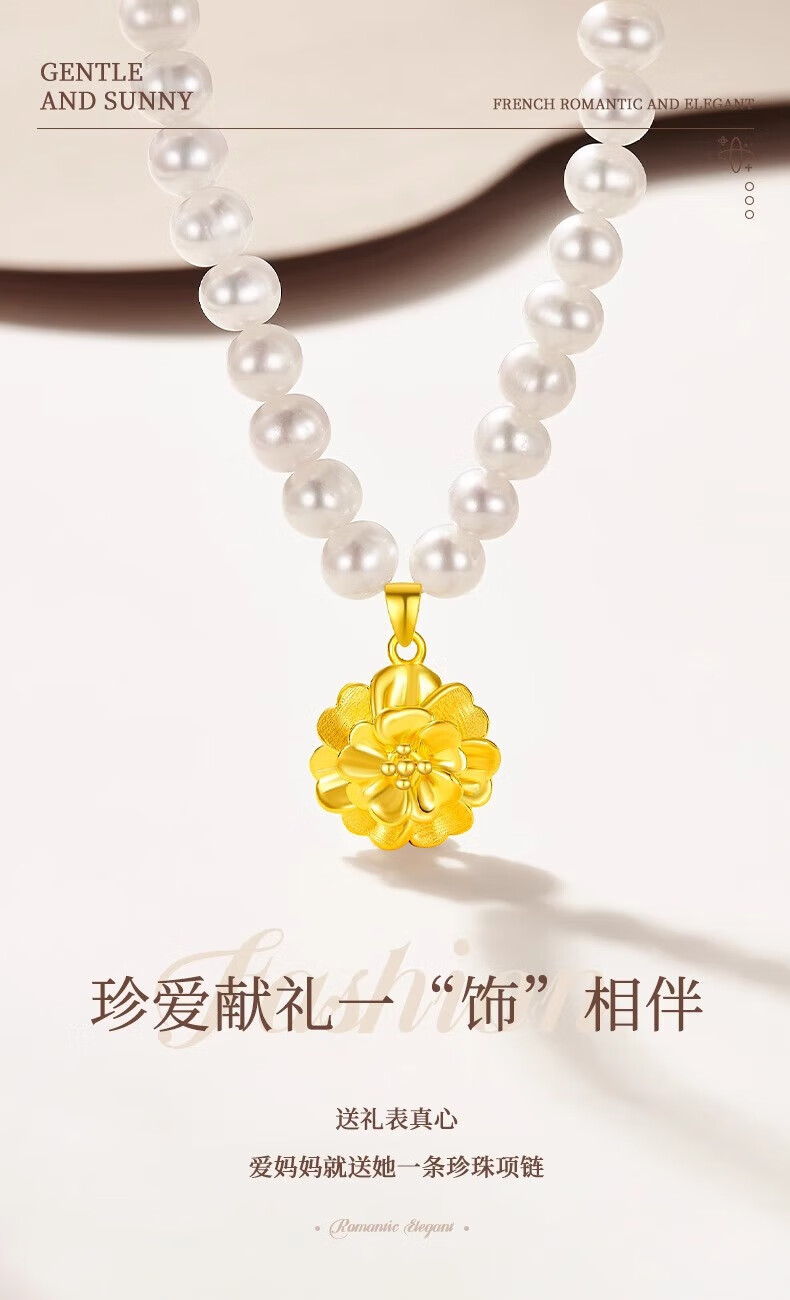 中国黄金(CHINA GOLD)牡丹花淡水珍珠项链女足金时尚吊坠新年实用生日礼物送老婆妈妈 足金牡丹花珍珠项链 约1.35g