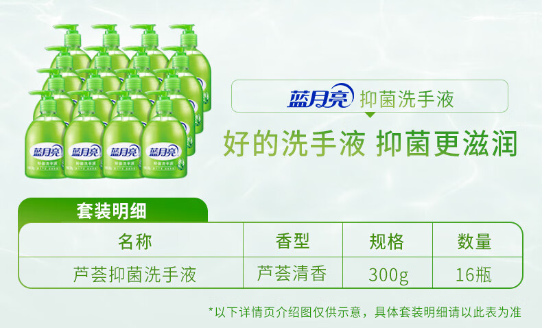 蓝月亮芦荟抑菌洗手液 滋润保湿 抑菌率99.9% 丰富泡沫 温和护手 300g*1