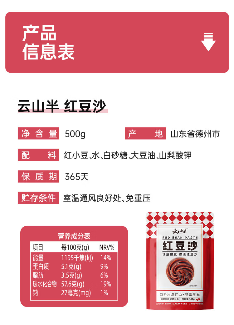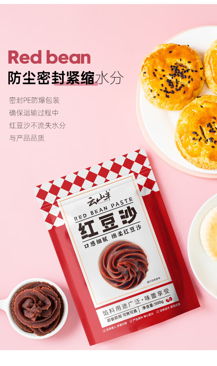 云山半红豆沙馅500g 中秋节月饼馅料端午包粽子青团元宵汤圆专用材料