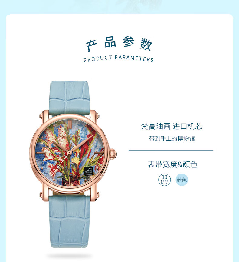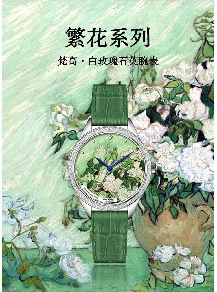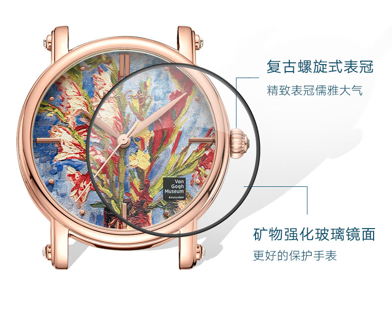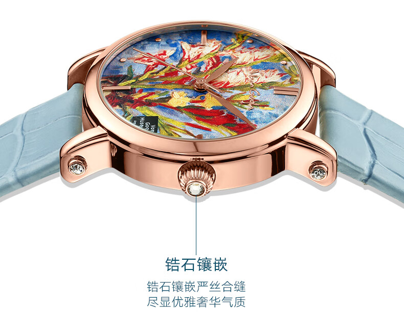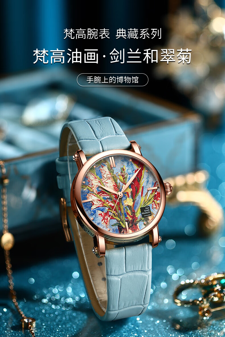 梵高/梵高 送女友礼物女士艺术防水石英表牛皮表带时尚休闲学生手表 盛开的杏树 Lady 09