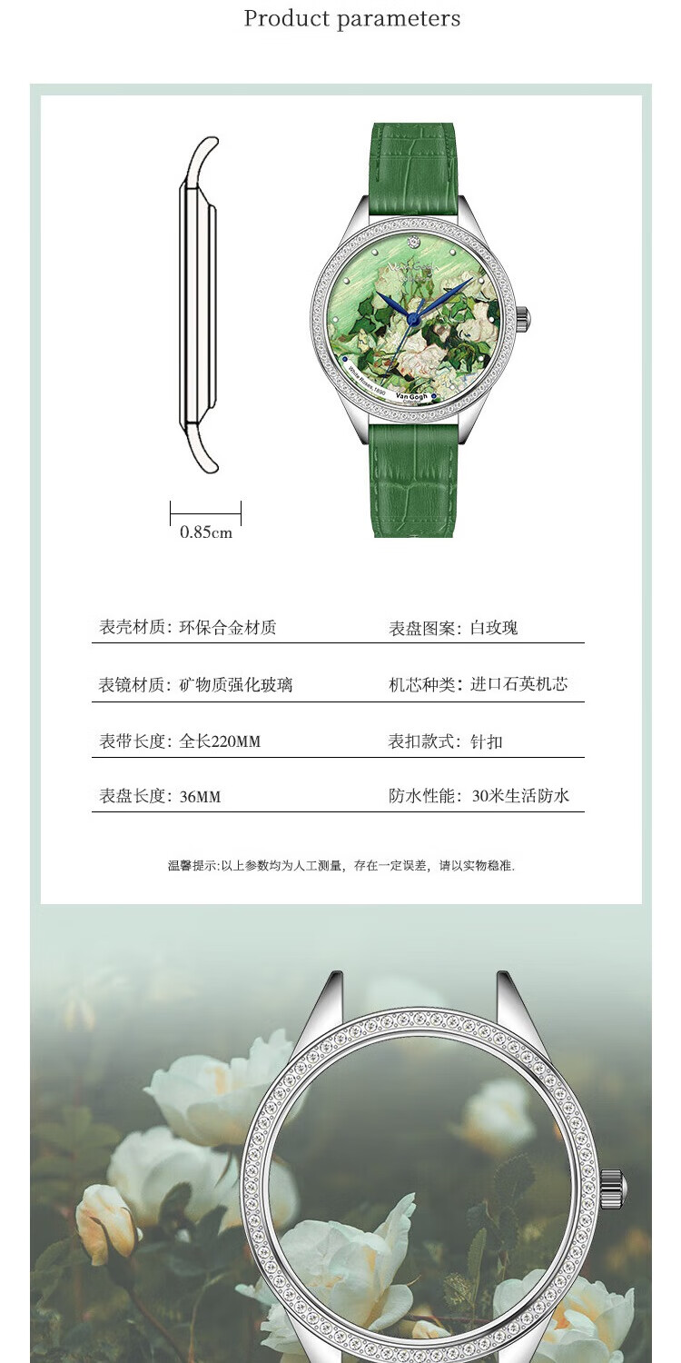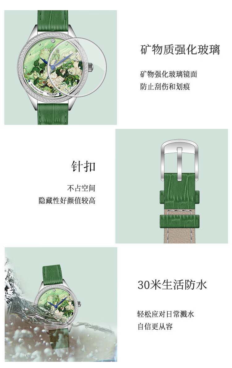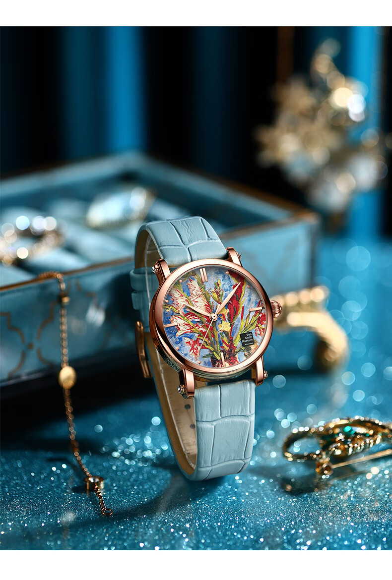 梵高/梵高 送女友礼物女士艺术防水石英表牛皮表带时尚休闲学生手表 盛开的杏树 Lady 09
