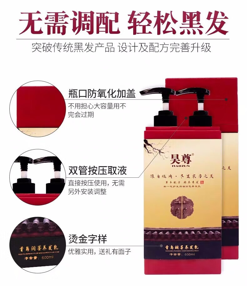 昊尊洗出彩植物染发变黑草本洗发染发剂遮盖白发六色大容量在家自己染 新款升级版(自然黑) 600ml