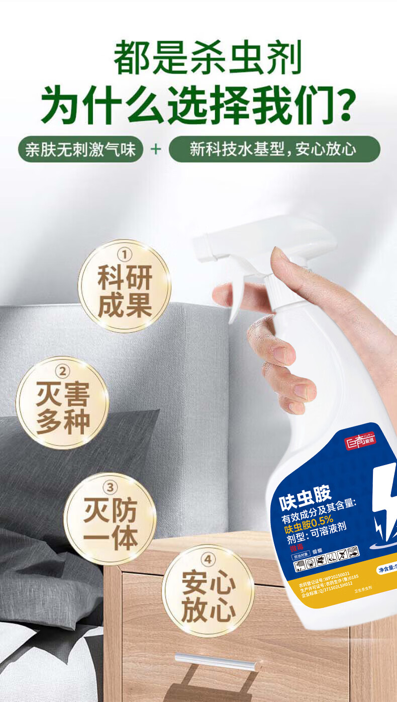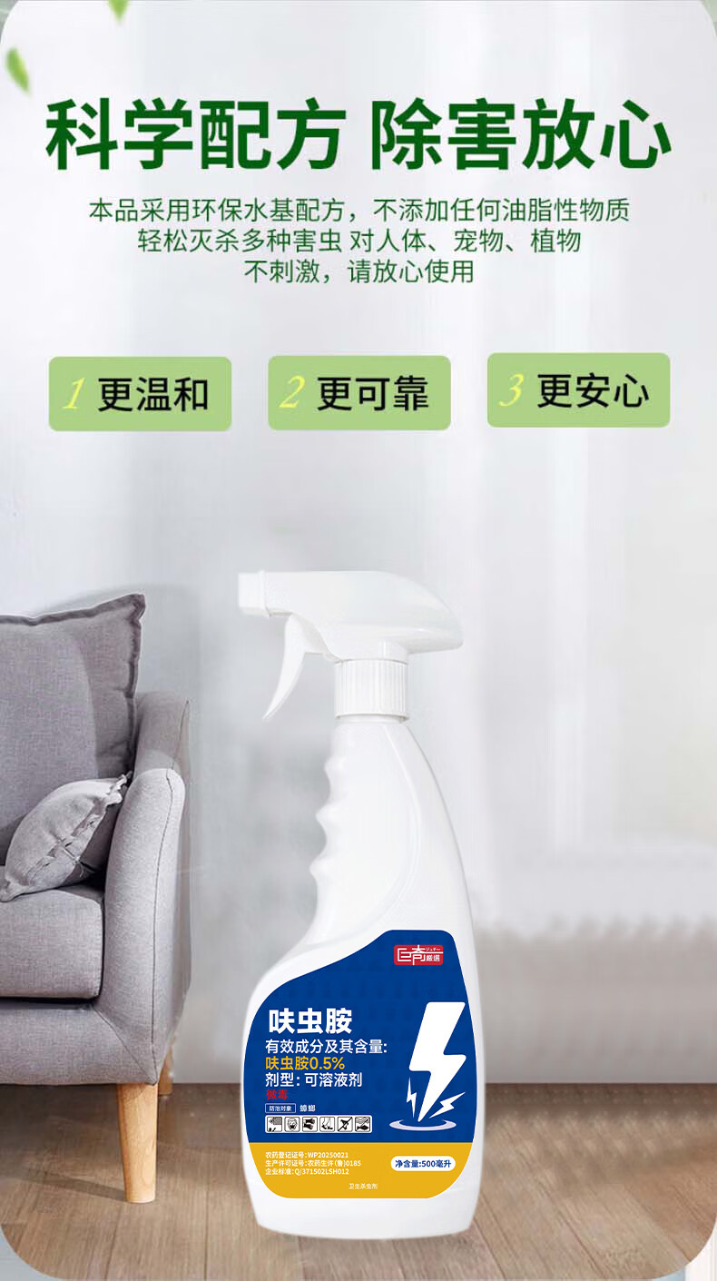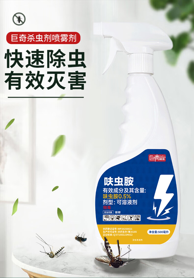 巨奇呋虫胺杀虫剂隐翅虫喷雾剂家用免洗杀虫神器果蝇蚊子疥虫500ml*2