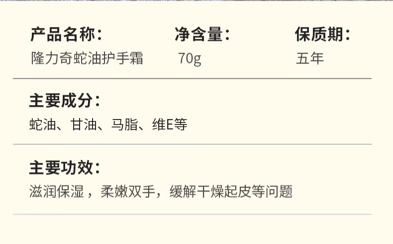 隆力奇蛇油护手霜70g滋润保湿双效防护蛇油膏防干裂嫩肤不油腻男女装 护手霜 50g