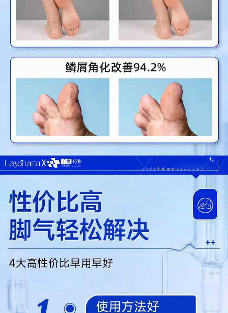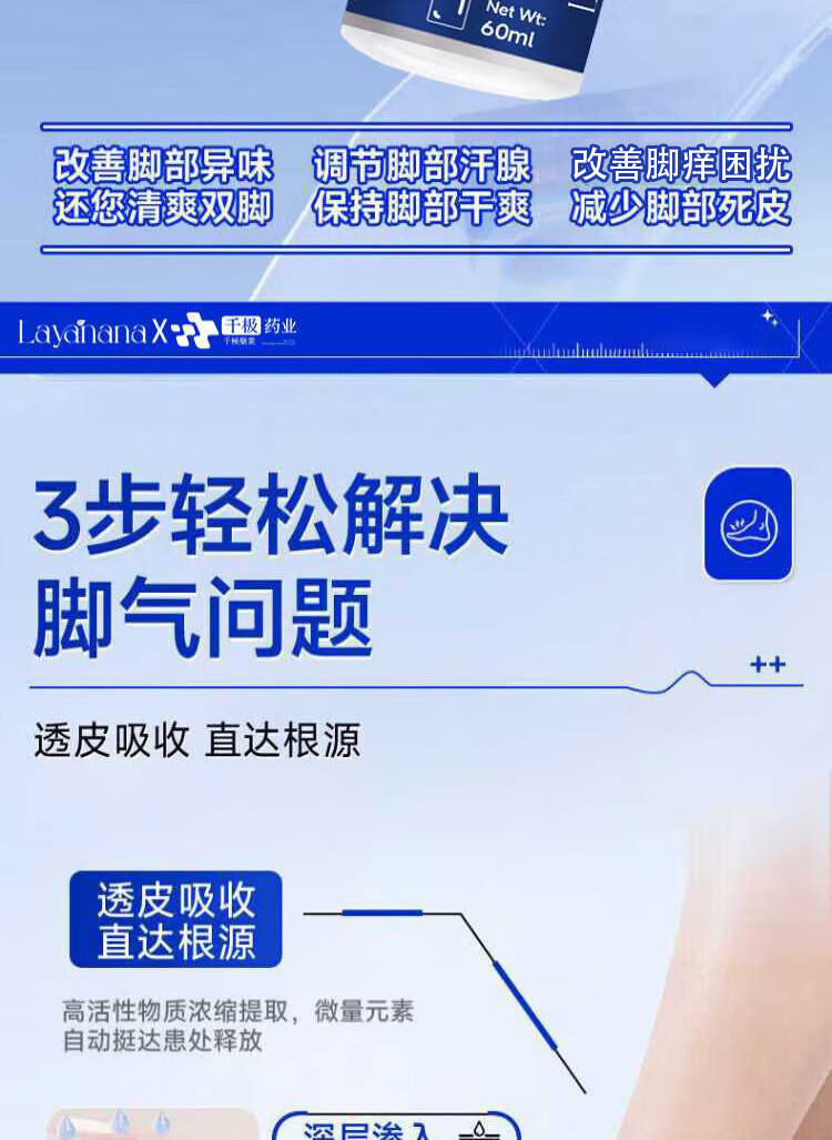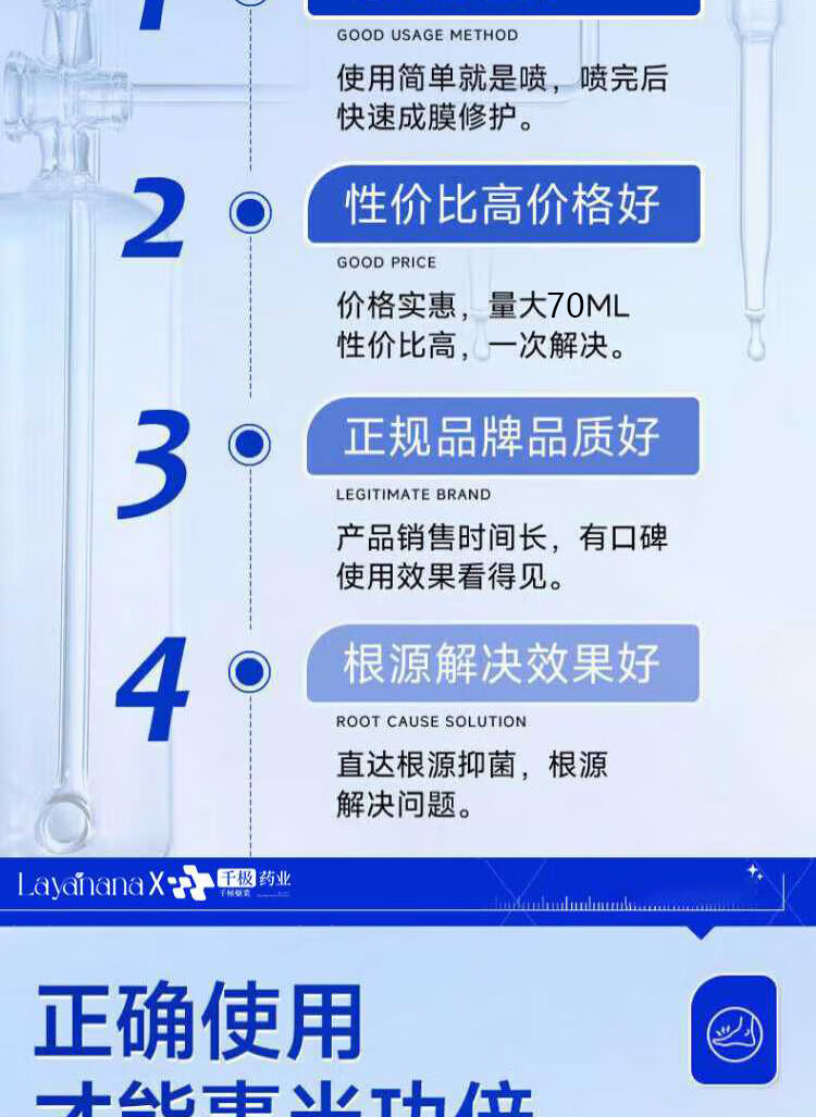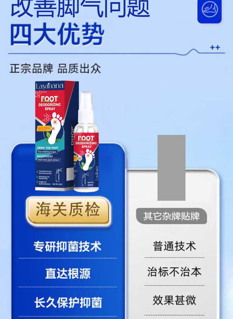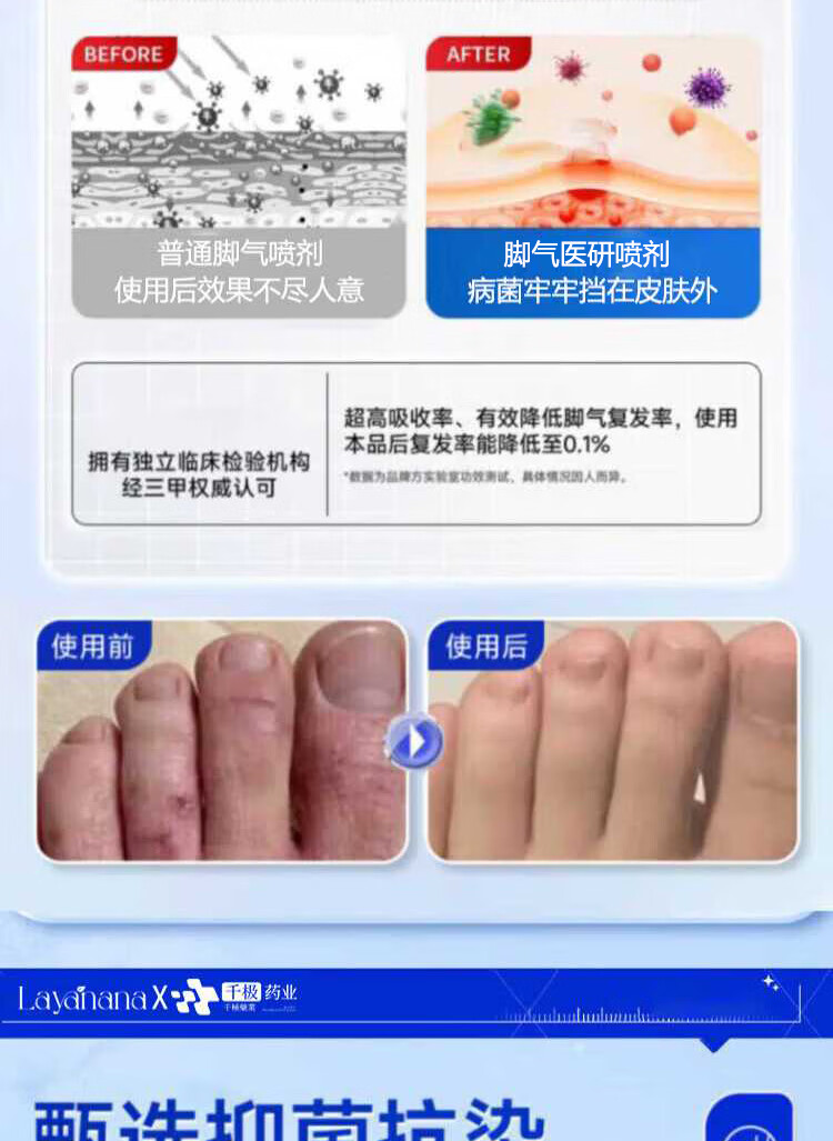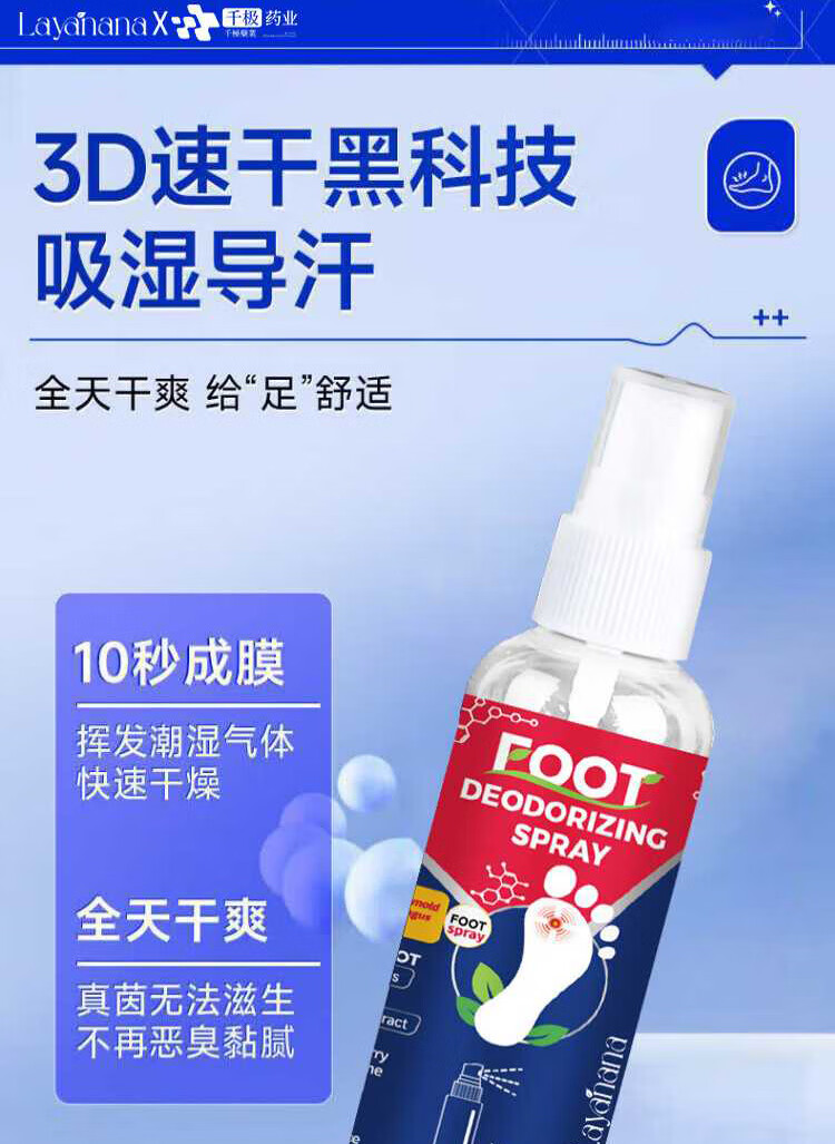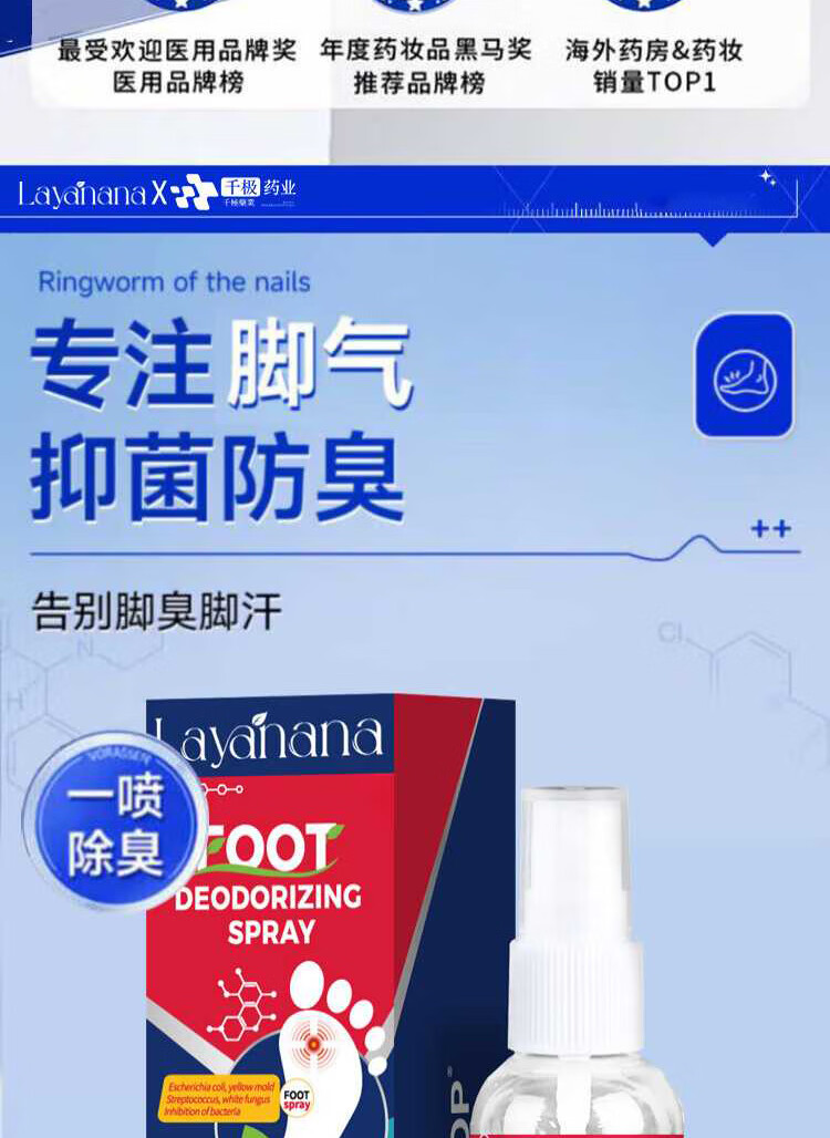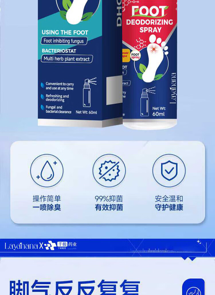 Layanana脚气喷剂止痒脱皮烂脚丫真菌感染脚臭脚痒改善足部抑菌喷雾剂60ML