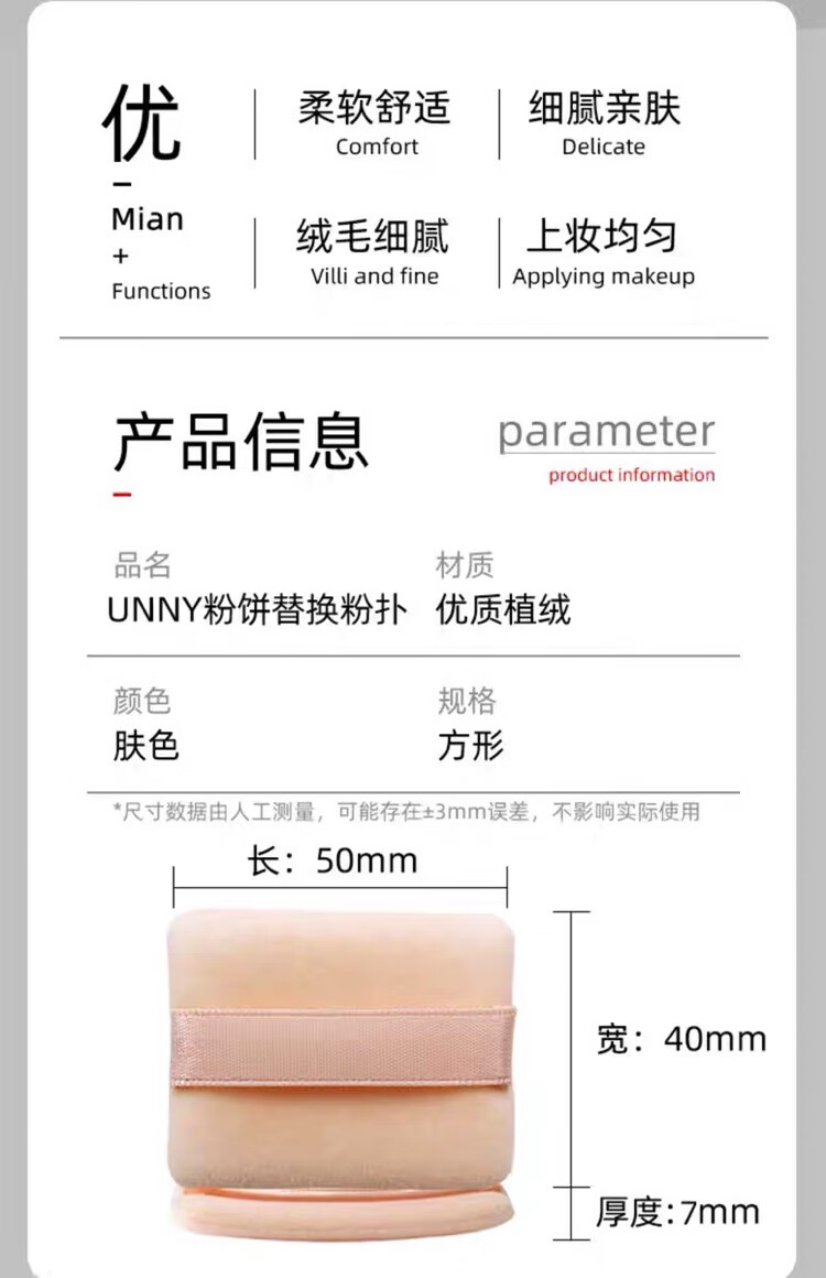 UNNY粉饼粉扑替换双面植绒蜜粉扑散粉定妆专用长方形小号粉扑 厚款 3枚 UNNY粉饼替换粉扑