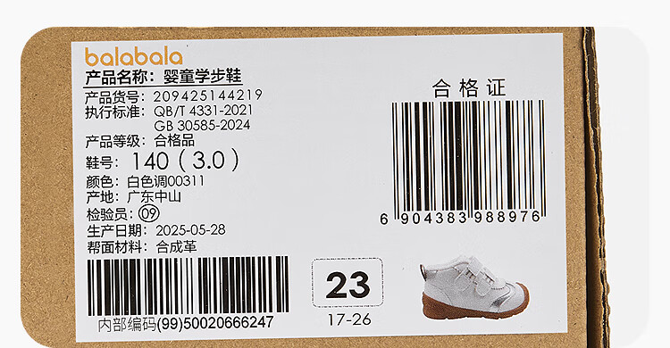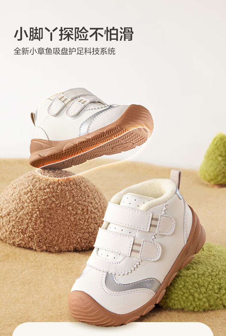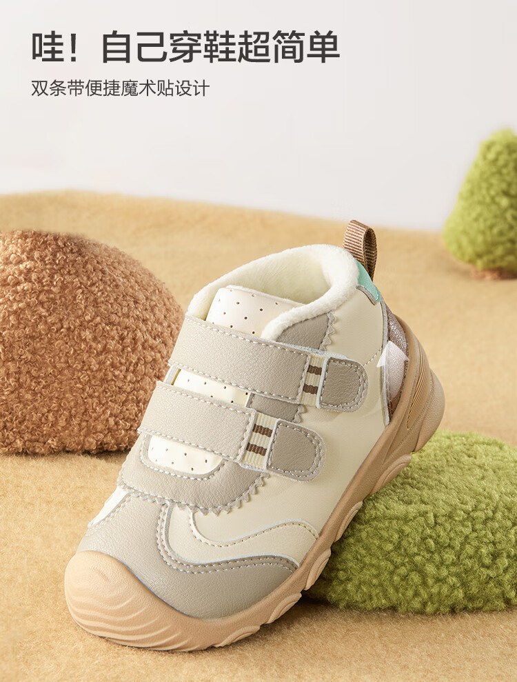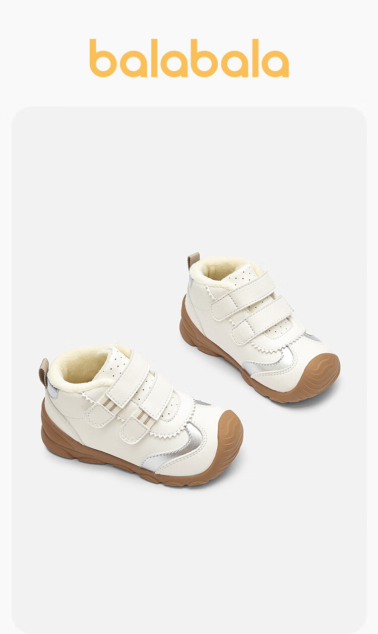 巴拉巴拉童鞋儿童学步鞋婴儿鞋子男女童宝宝鞋2025秋冬运动鞋加绒 小云朵 白色调【支撑防扭后跟杯】 19 (脚长11.8-12.2/内长13.2)