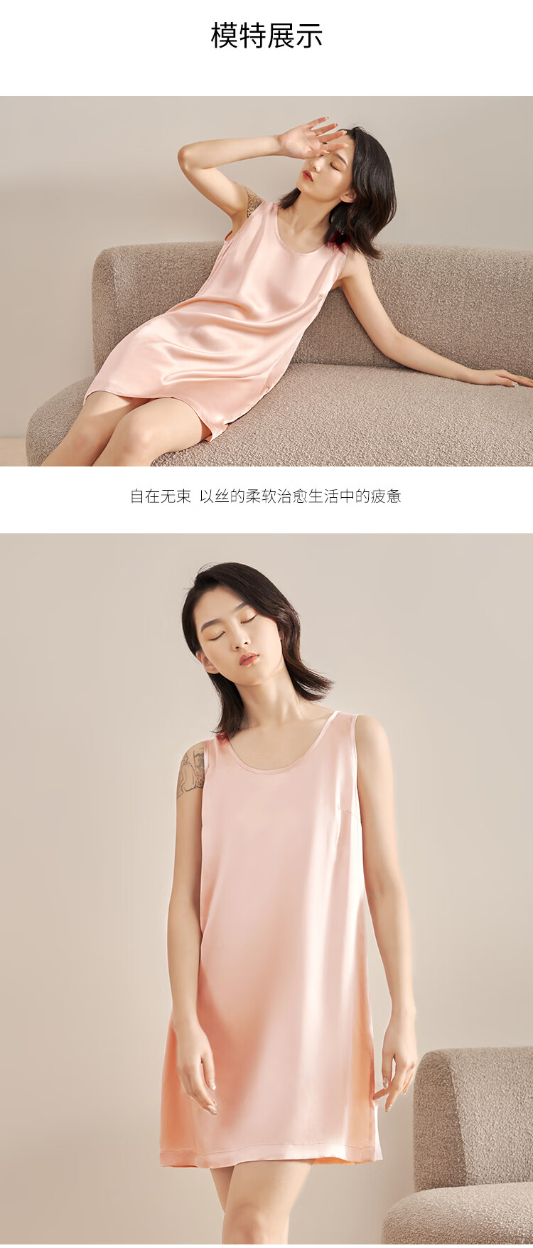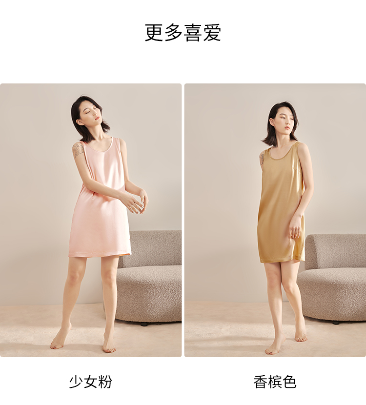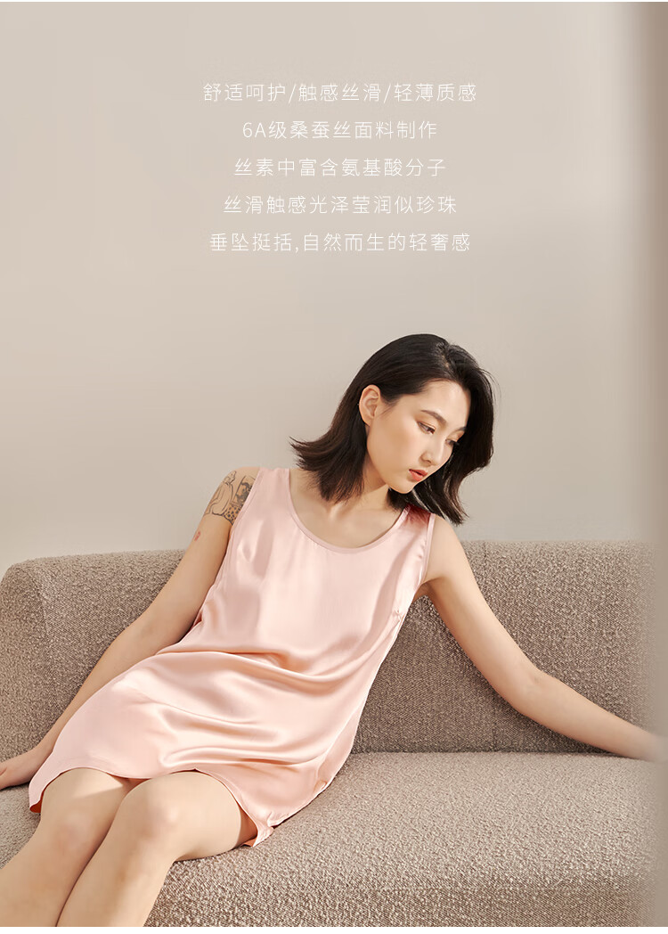 觅丝(Agentmuse)裸感睡衣女真丝礼盒装睡裙桑蚕丝宽松无袖高级家居服651少女粉S