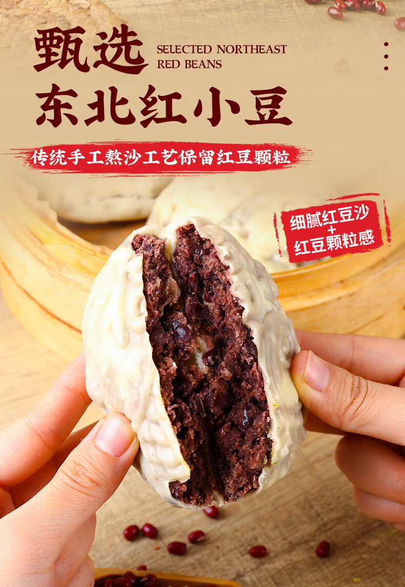 纯手工纸皮红豆饼豆沙包红豆包纸皮馒头窝窝头面点主食早餐半成品 纸皮红豆饼*1袋(5个) 500g