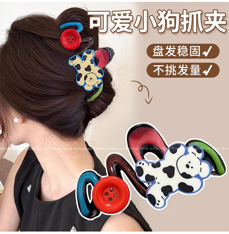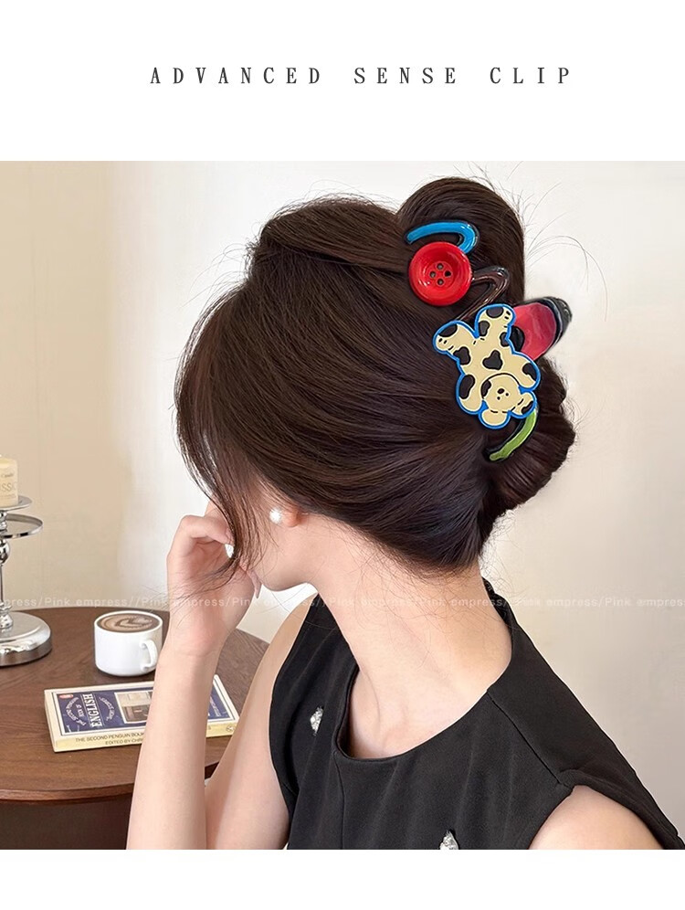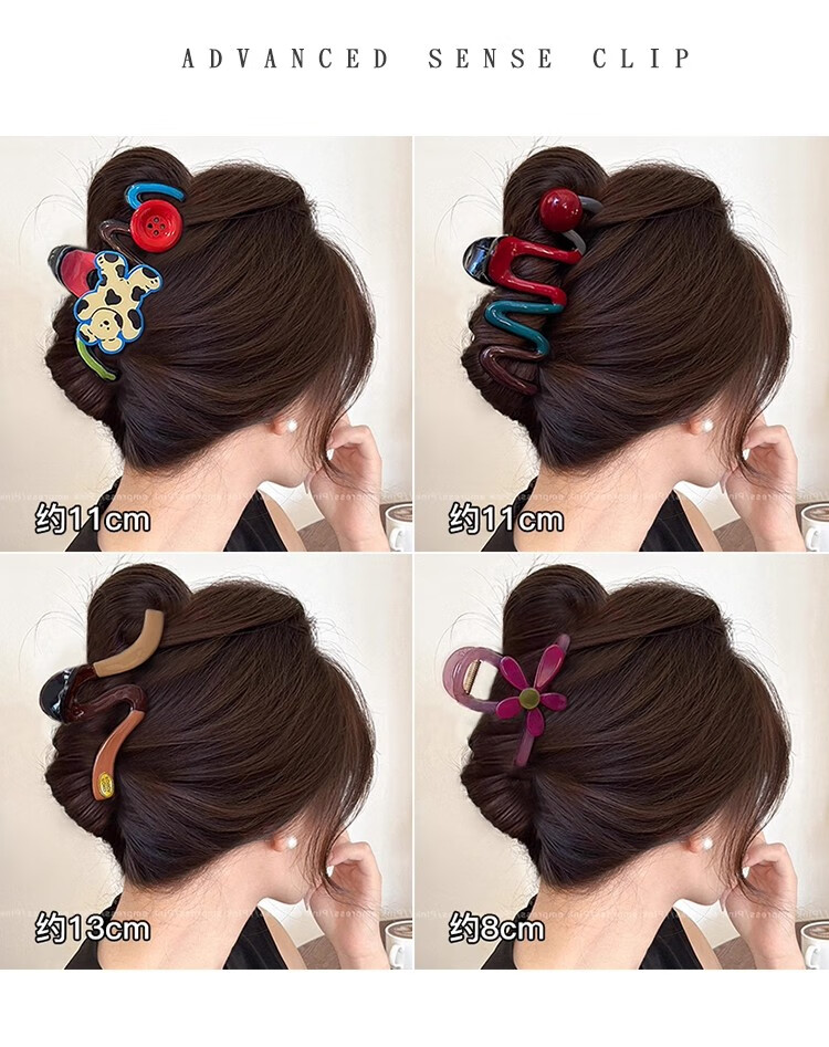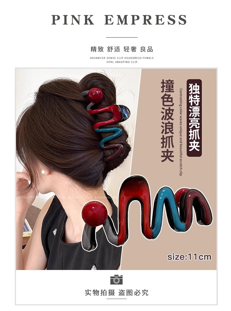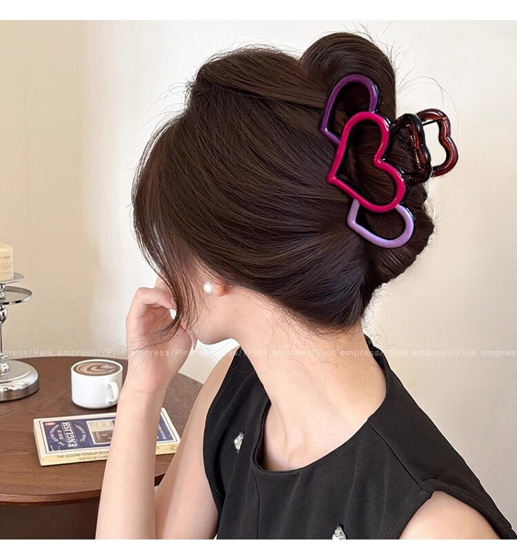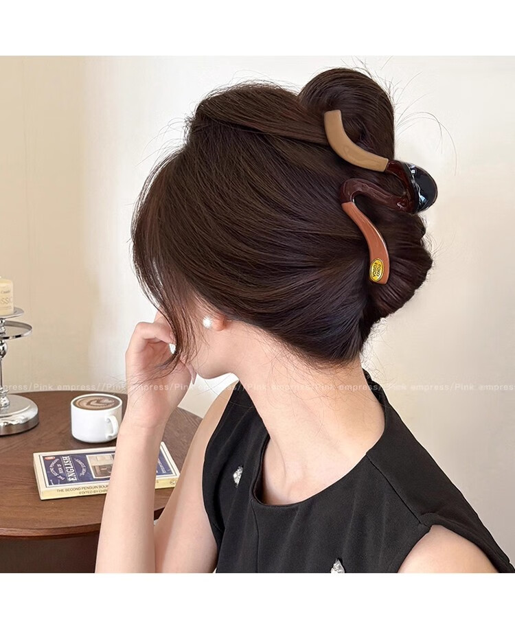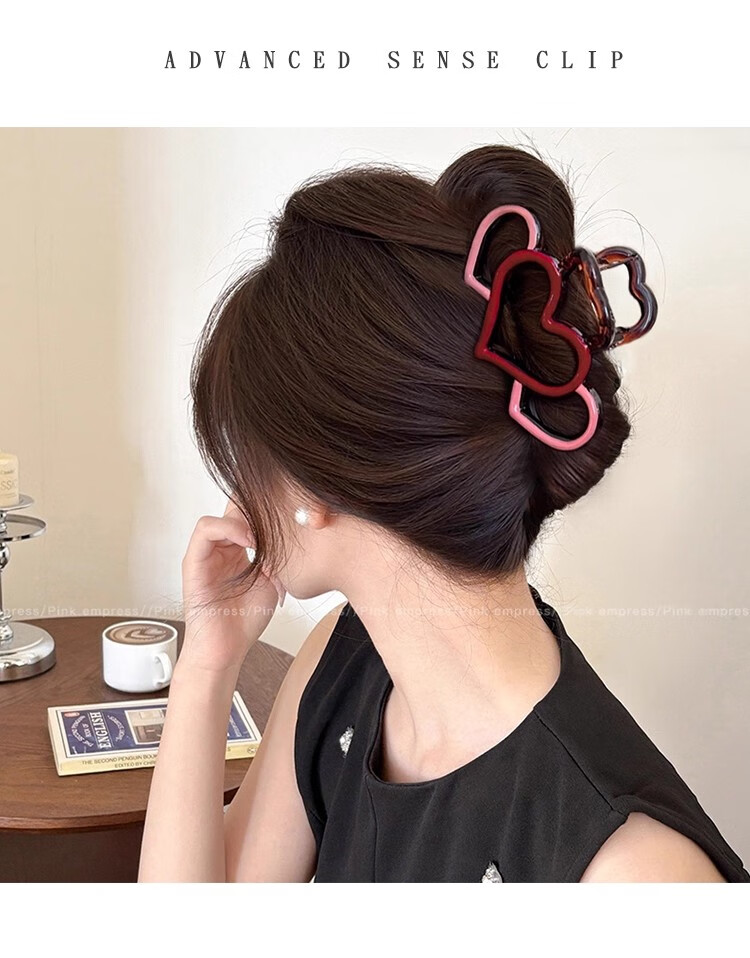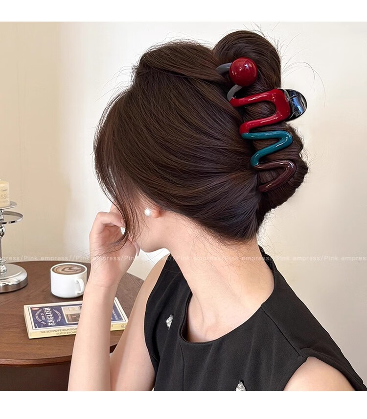 抓夹女大号发量大发卡后脑勺盘发鲨鱼夹发饰气质头发夹子头饰礼物 1#红色珍珠撞色抓夹
