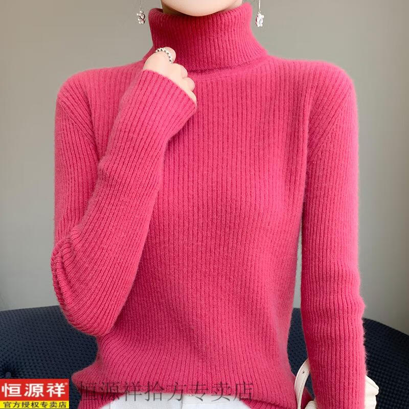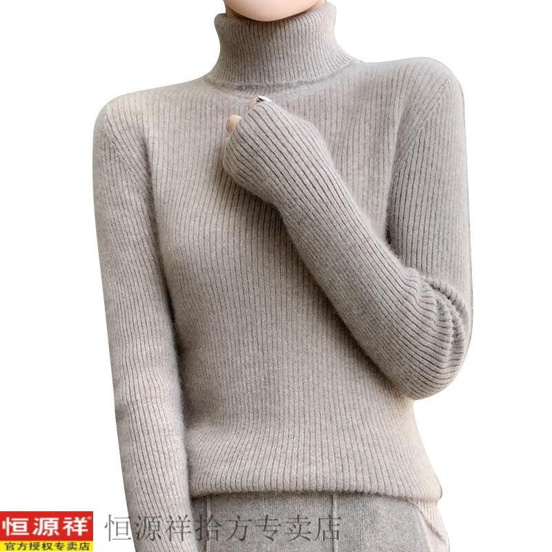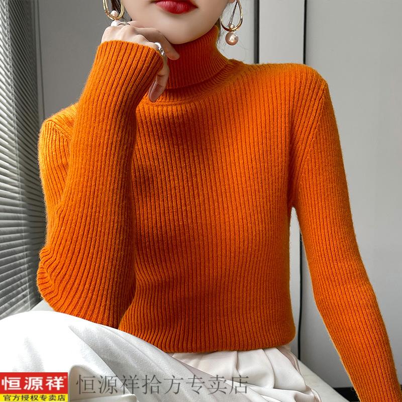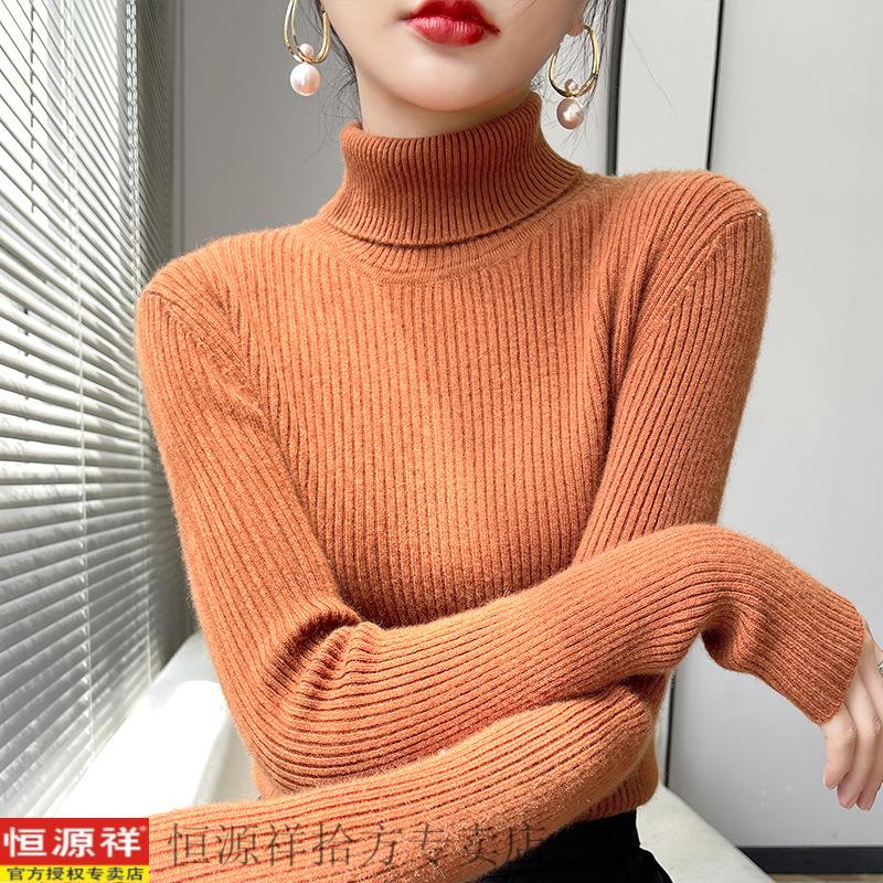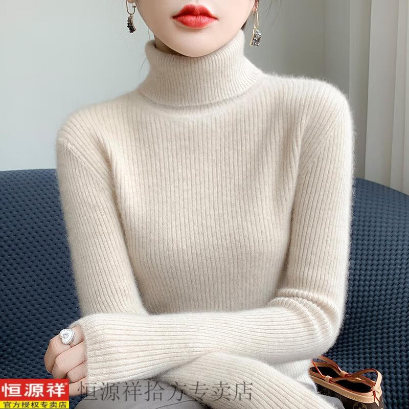 恒源祥抽条高领毛衣女冬加厚高翻领打底衫女秋冬修身针织长袖非羊毛衫女 白色 S
