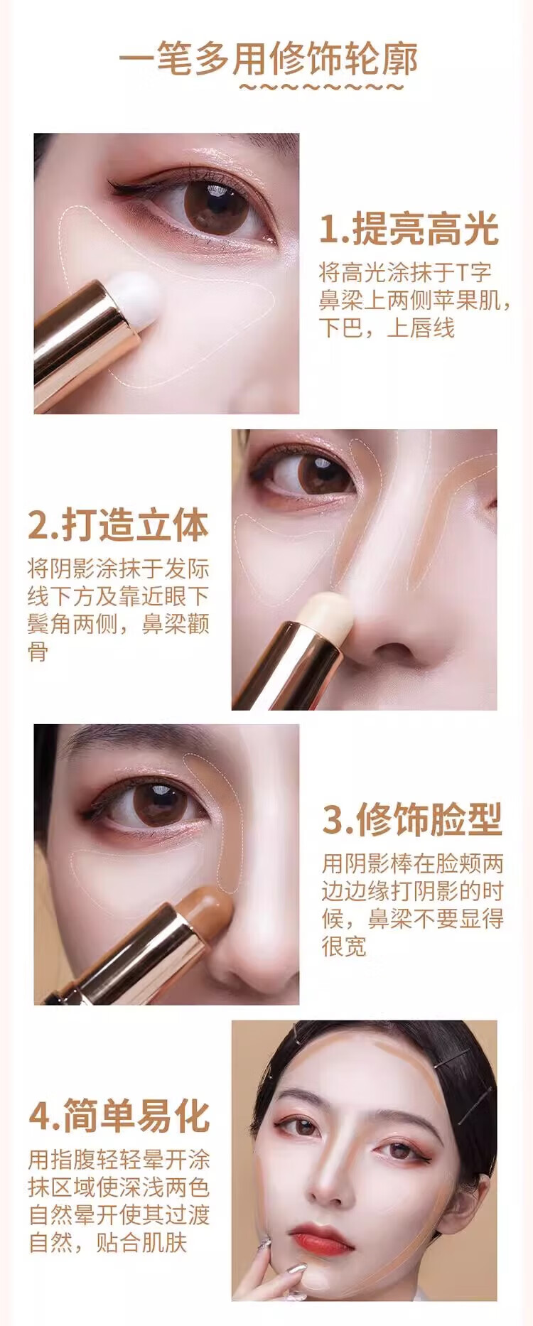 leezi眼影双头修容棒懒人高光遮瑕阴影膏v脸两用一体修容笔圣诞节礼物