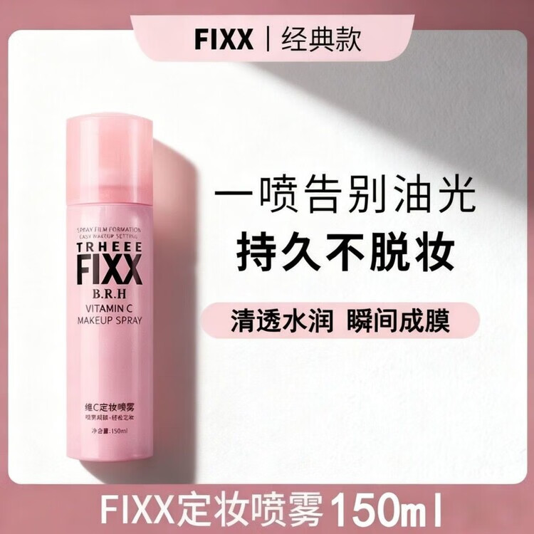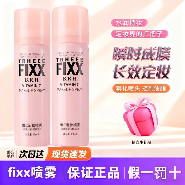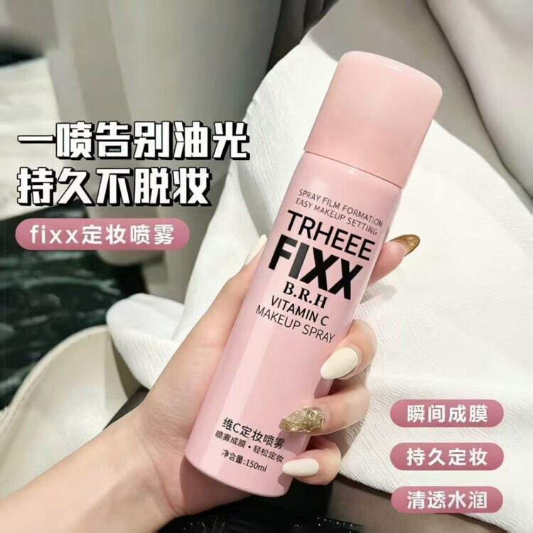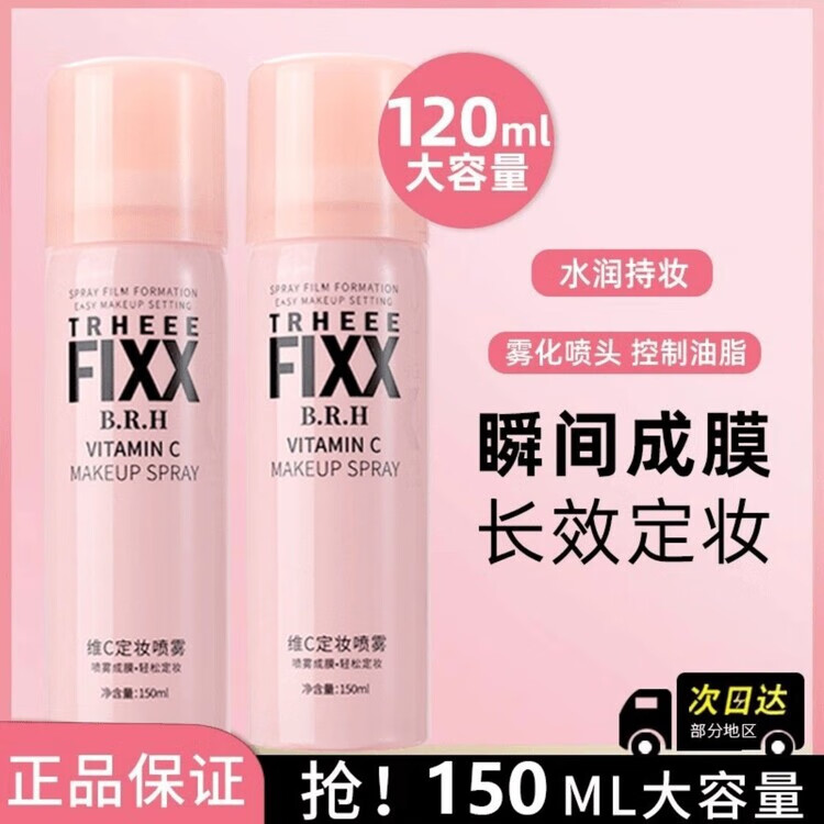 trheeeFIXX推荐定妆喷雾持久不脱防汗控油保湿补水防水不卡粉学生 FIXX定妆喷雾150ml+小样卸妆水+粉扑