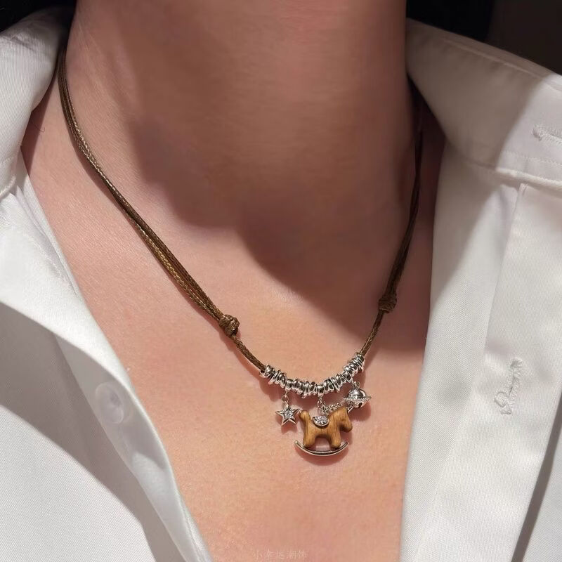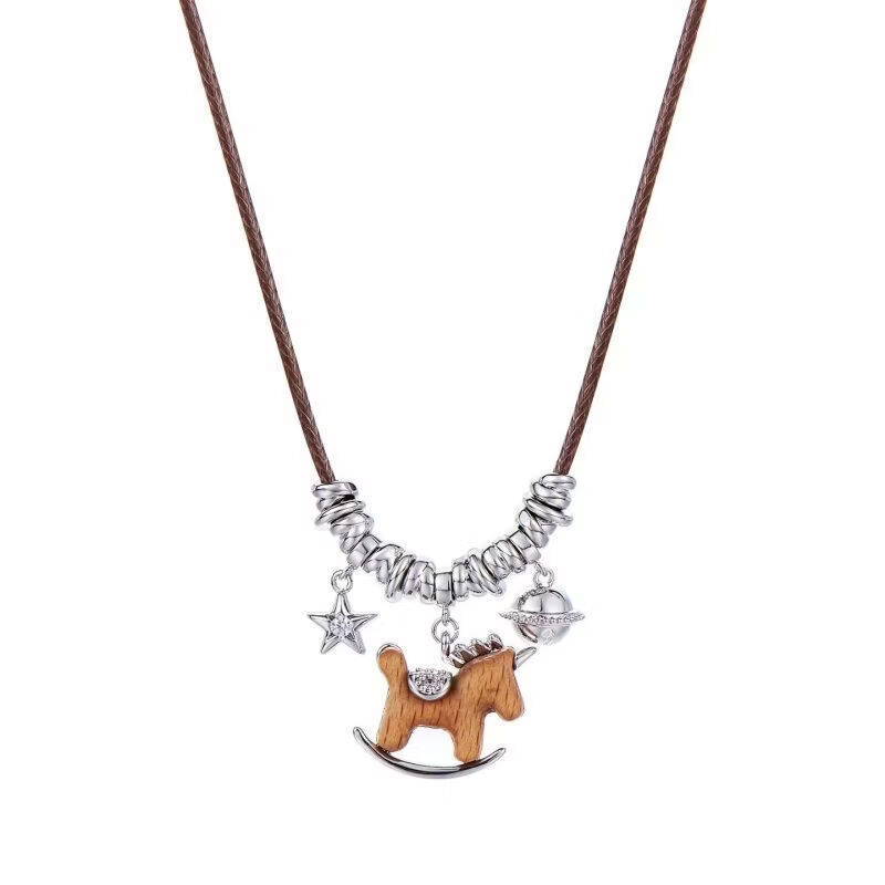 花饰庄园秋冬韩系皮绳小马吊坠项链新轻奢长款毛衣链时尚百搭颈链 皮绳小马吊坠项链