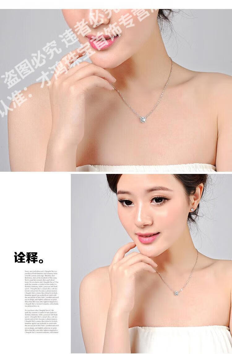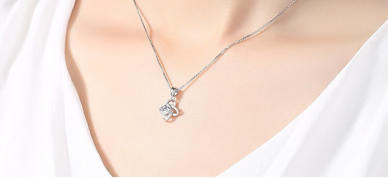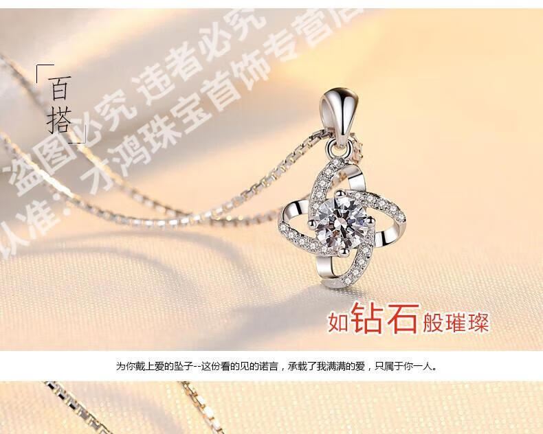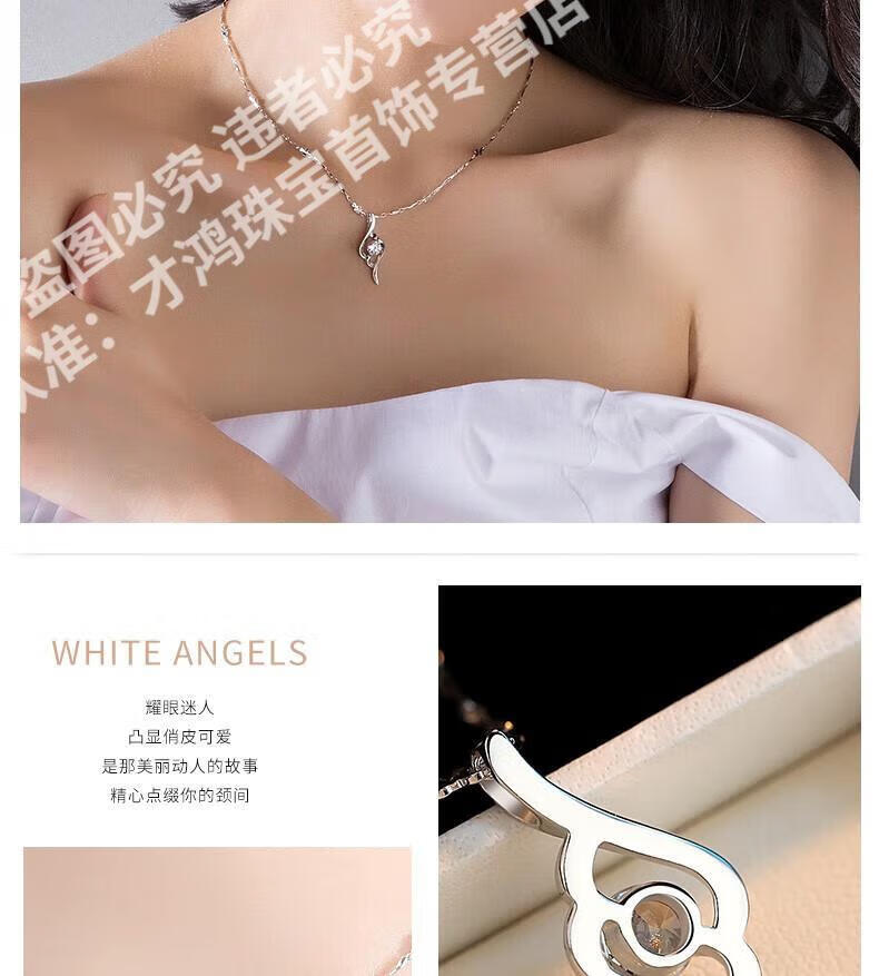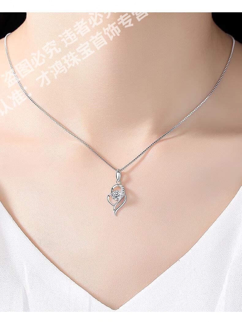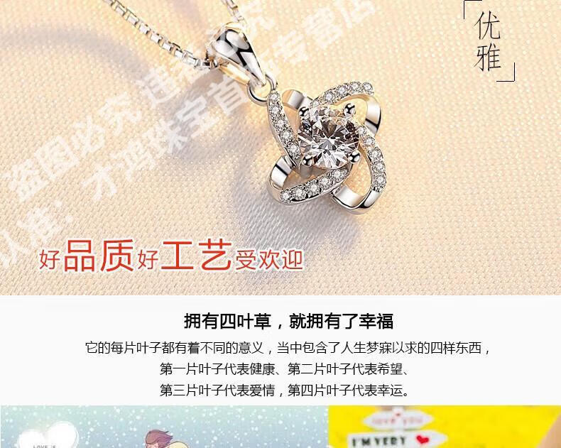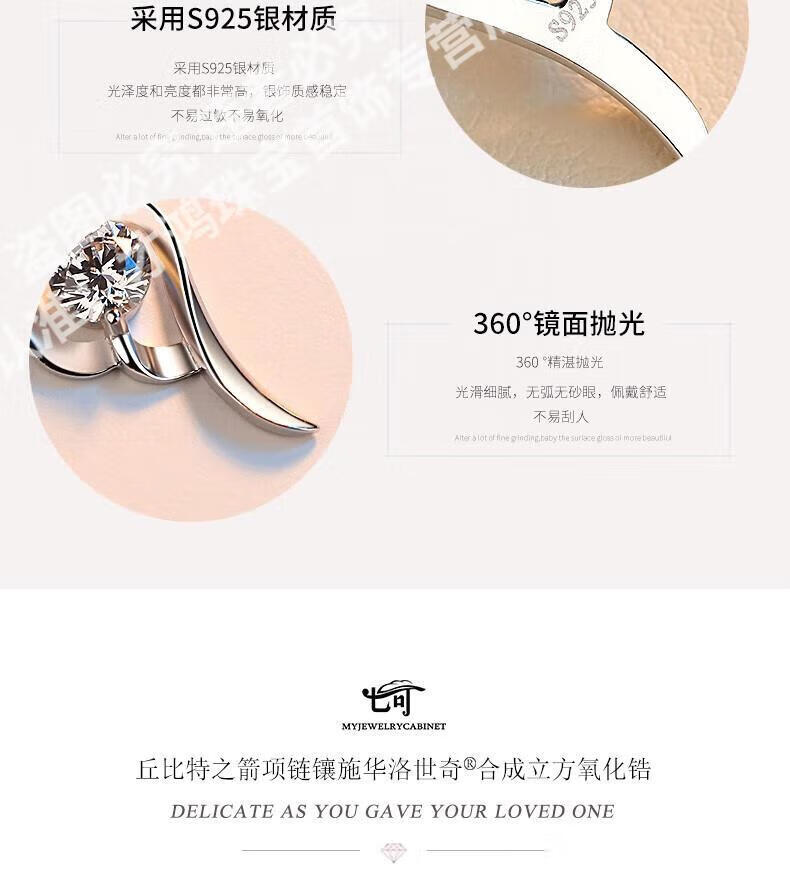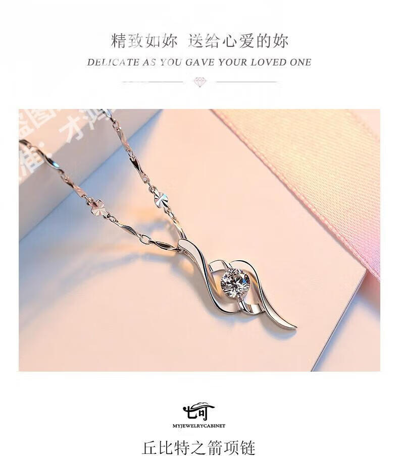 CFKLTD999银项链锁骨链女送女友生日礼物四叶草简约气质吊坠百搭 丘比特之箭白钻+水波链+证书