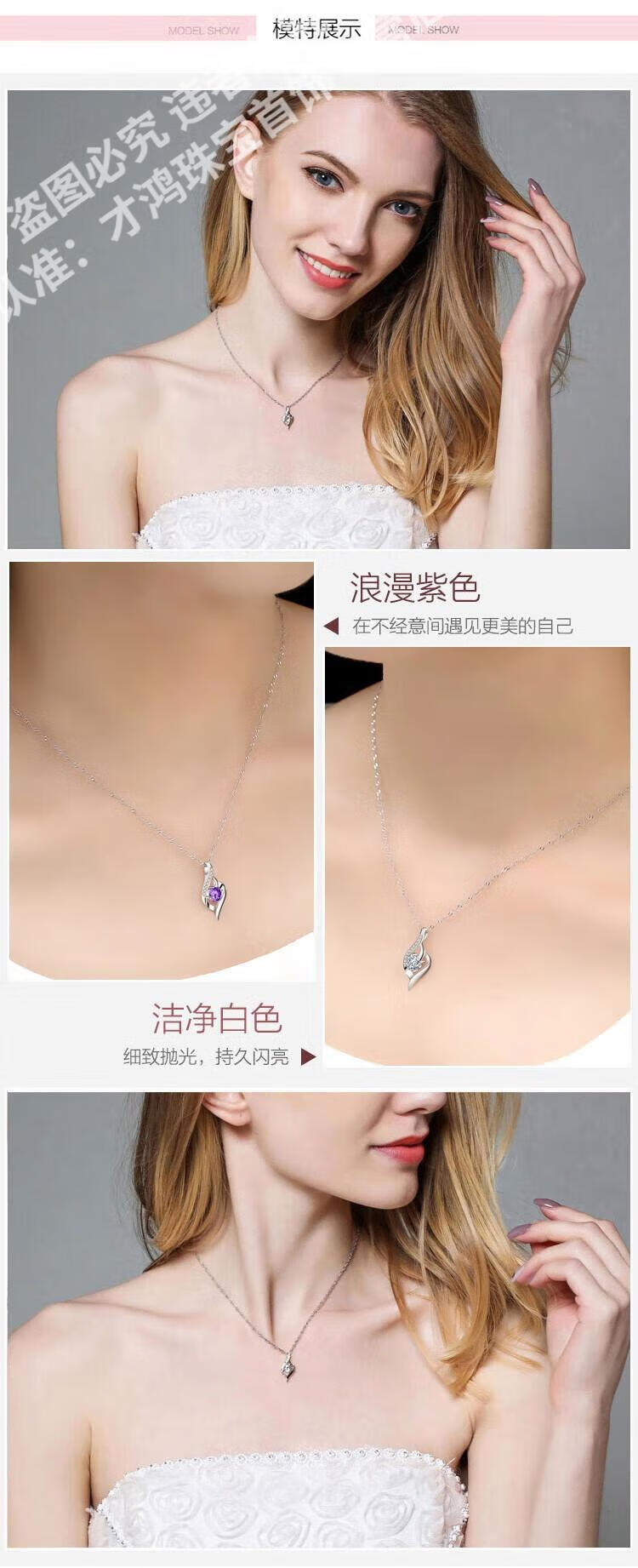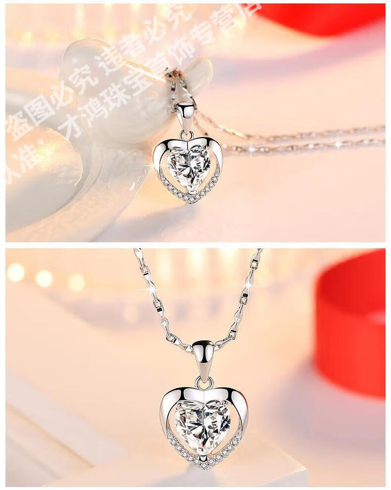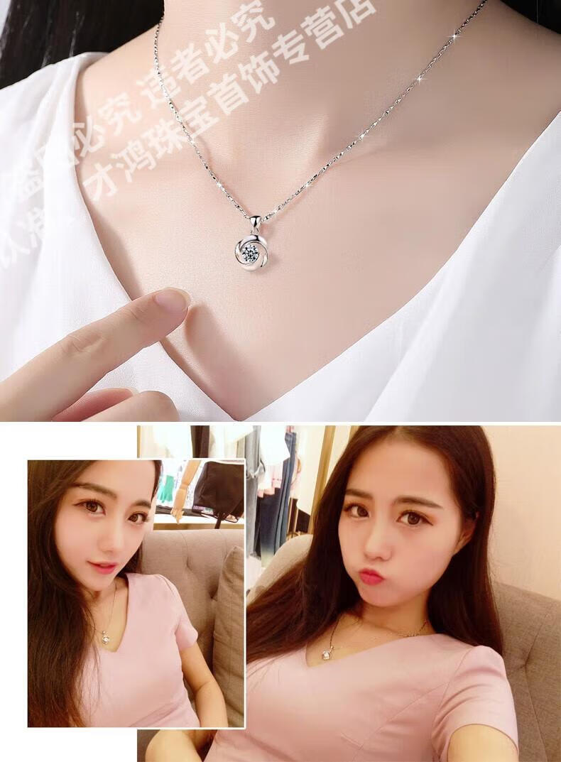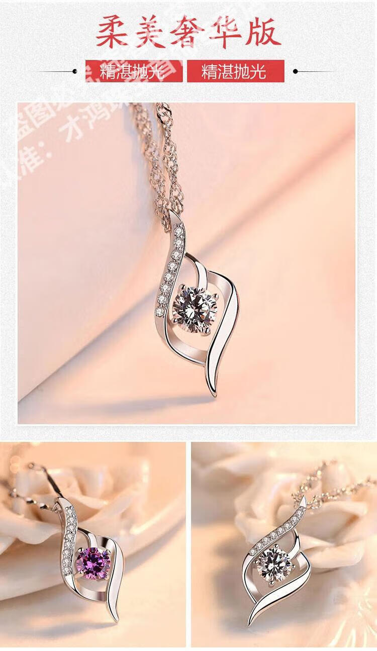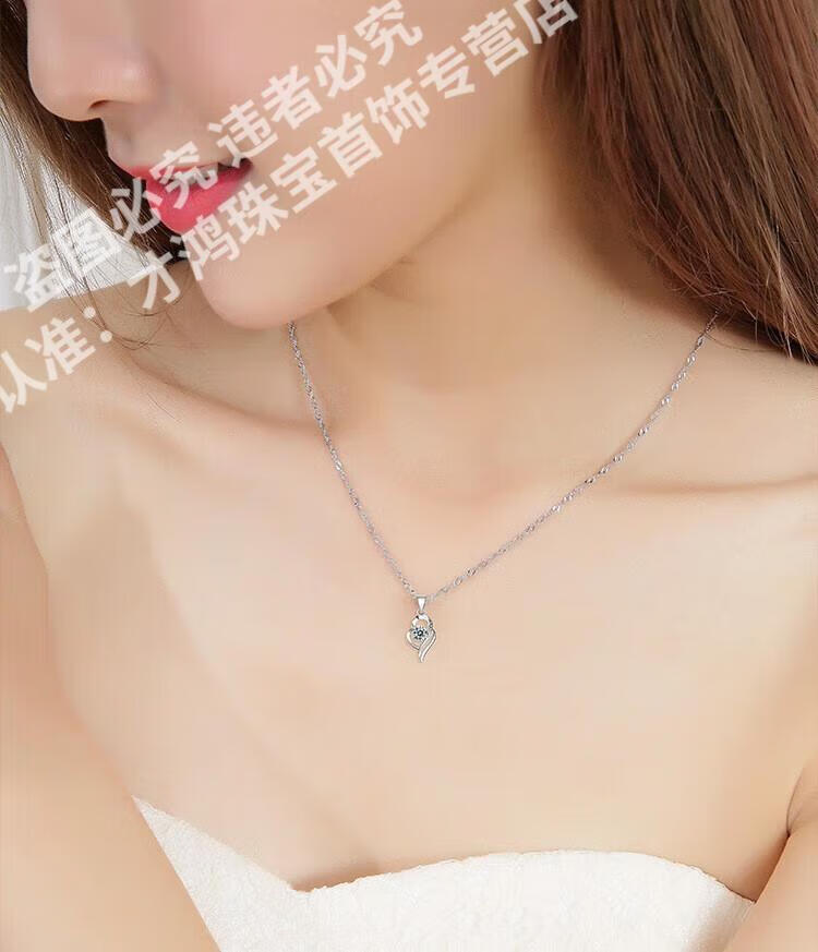 CFKLTD999银项链锁骨链女送女友生日礼物四叶草简约气质吊坠百搭 丘比特之箭白钻+水波链+证书
