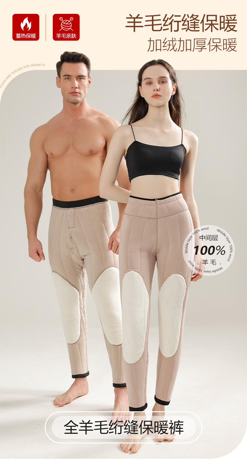 欧迪芬100%羊毛裤保暖裤女加绒加厚中老年貂绒护膝东北棉裤女外穿送爸妈