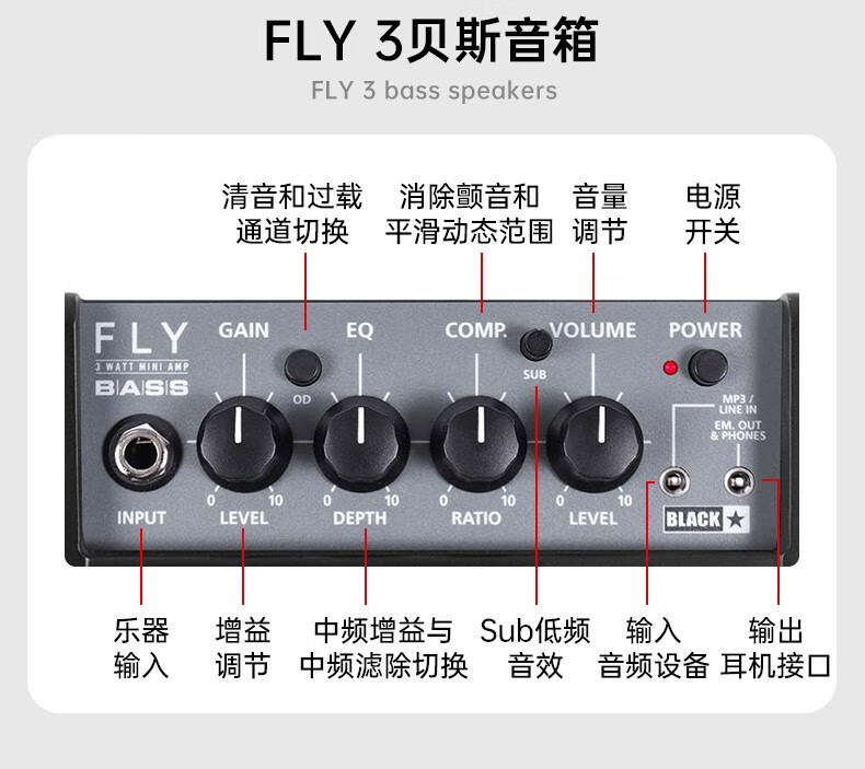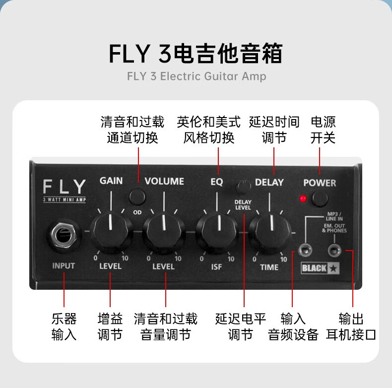 黑星音箱黑星fly3民谣木吉他贝斯音响电吉他音箱 黑色(电吉他款)