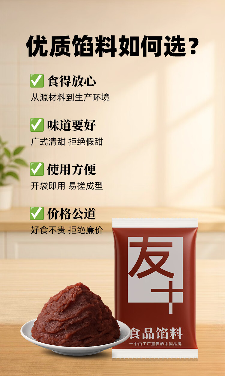 低糖红豆沙馅料450克 无蔗糖油性豆沙烘焙原料月饼糕点家用 红豆沙 450克*1袋