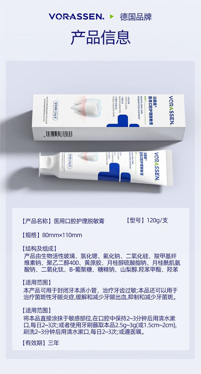 仁奕堂沃朗森医用口腔护理脱敏膏牙龈炎症出血菌斑牙膏状 【共360g】3支装 脱敏型