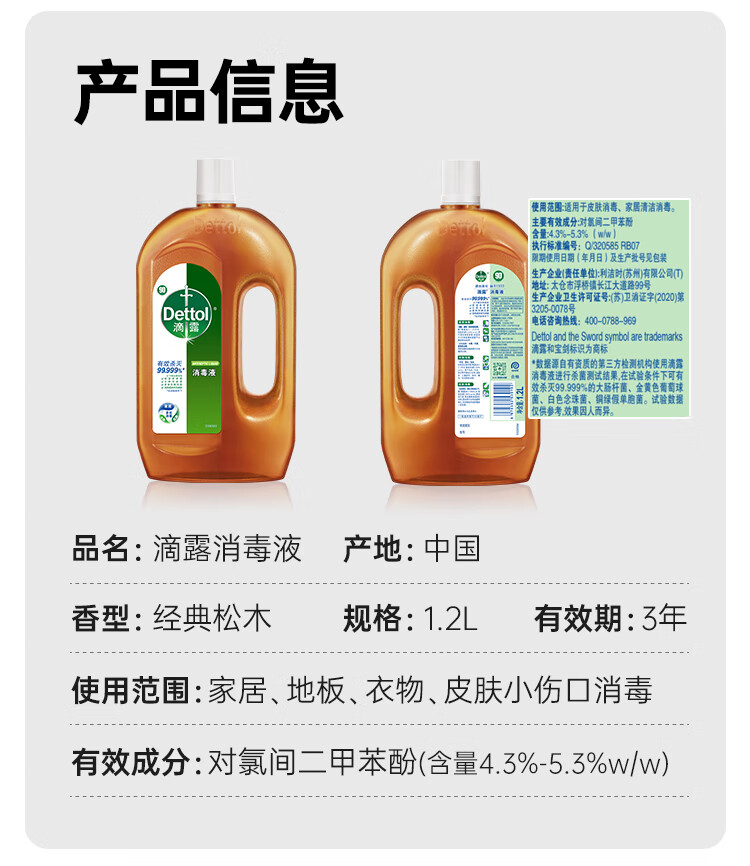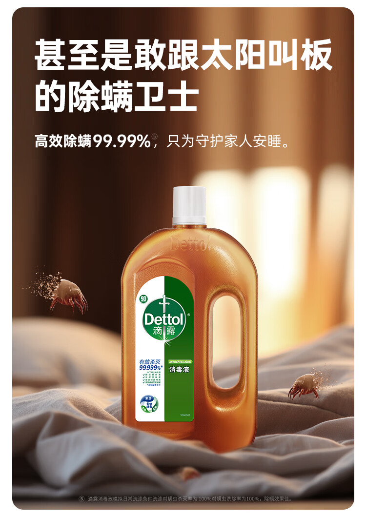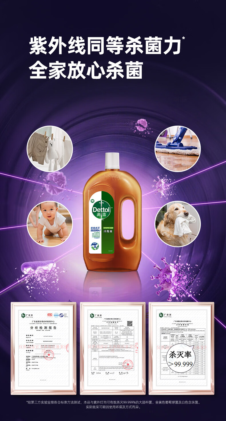 滴露(Dettol)消毒液消毒水1.2L衣物除菌液家居环境地板杀菌除螨 非84甲流感