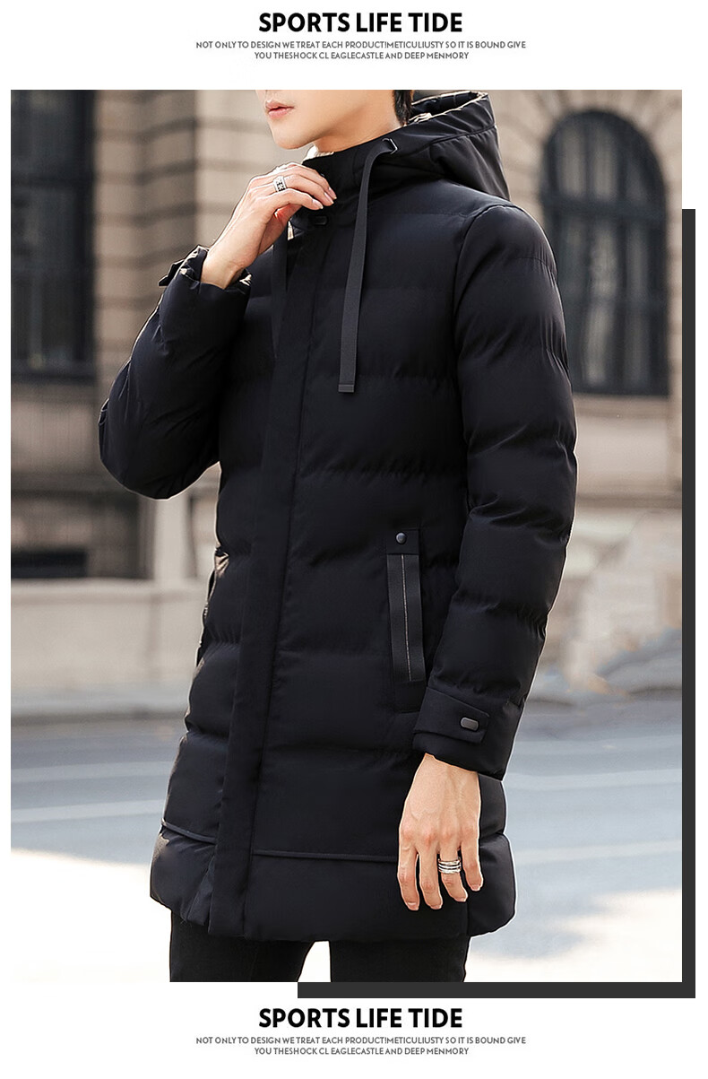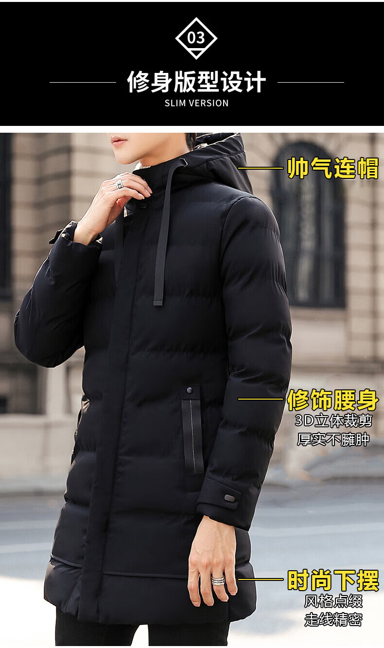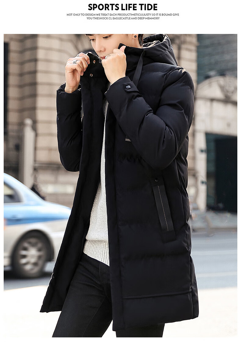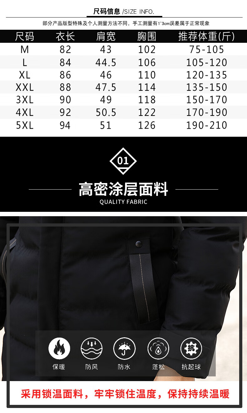 啄木鸟棉服男士中长款秋冬季2025加厚保暖棉衣大码休闲百搭棉袄外套冬装 黑色 2XL