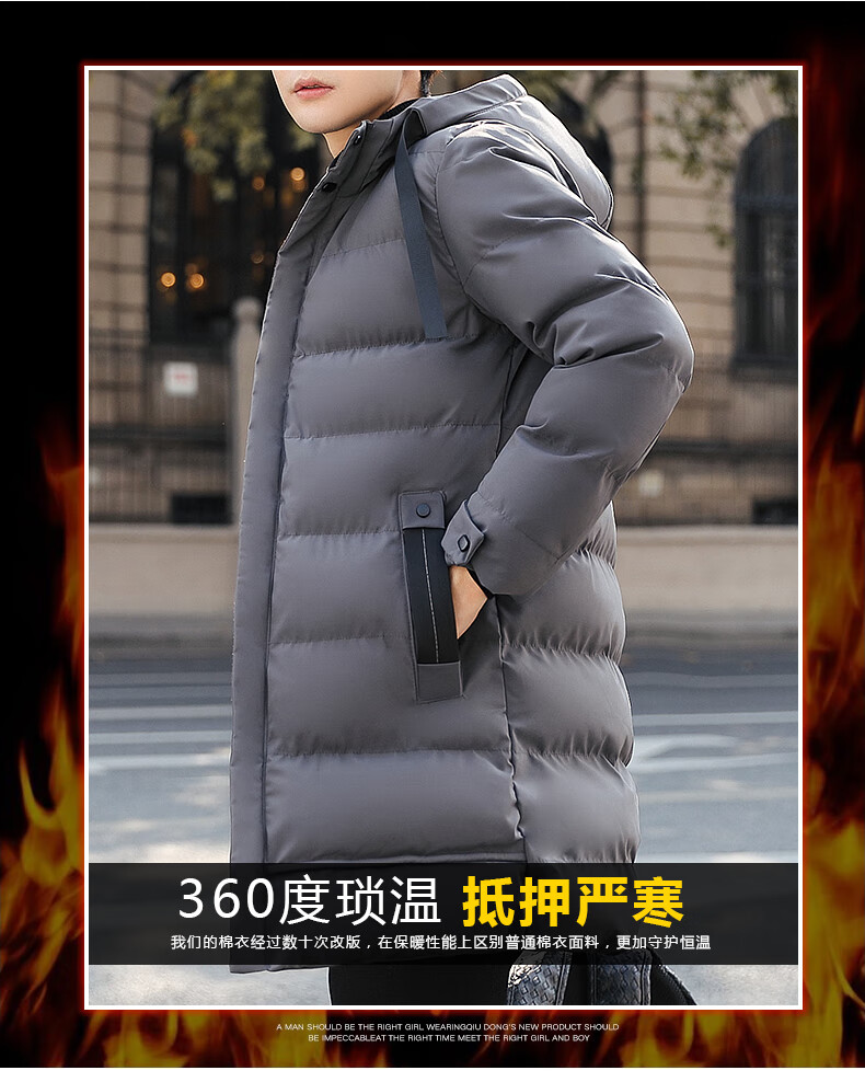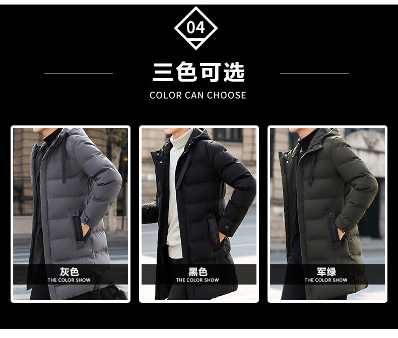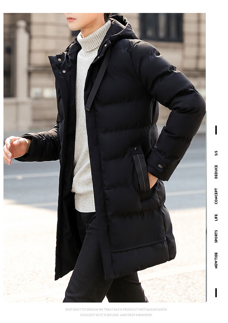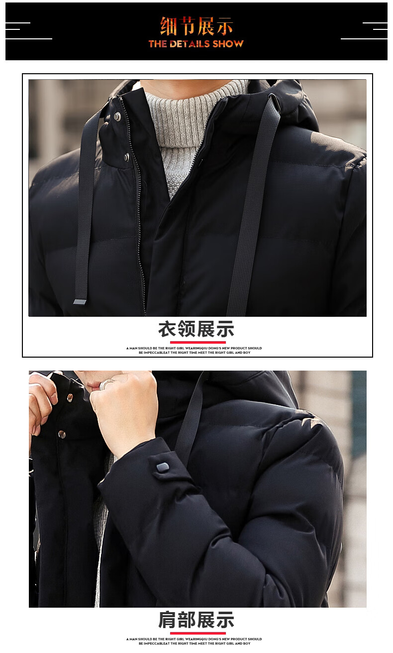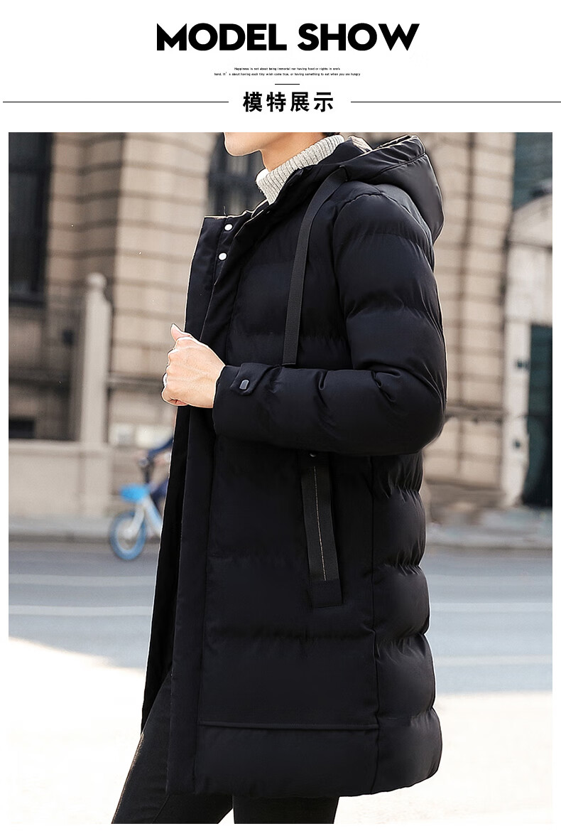 啄木鸟棉服男士中长款秋冬季2025加厚保暖棉衣大码休闲百搭棉袄外套冬装 黑色 2XL