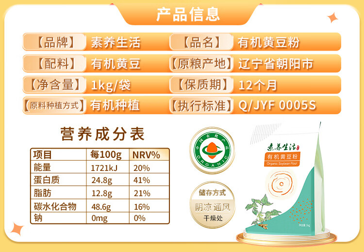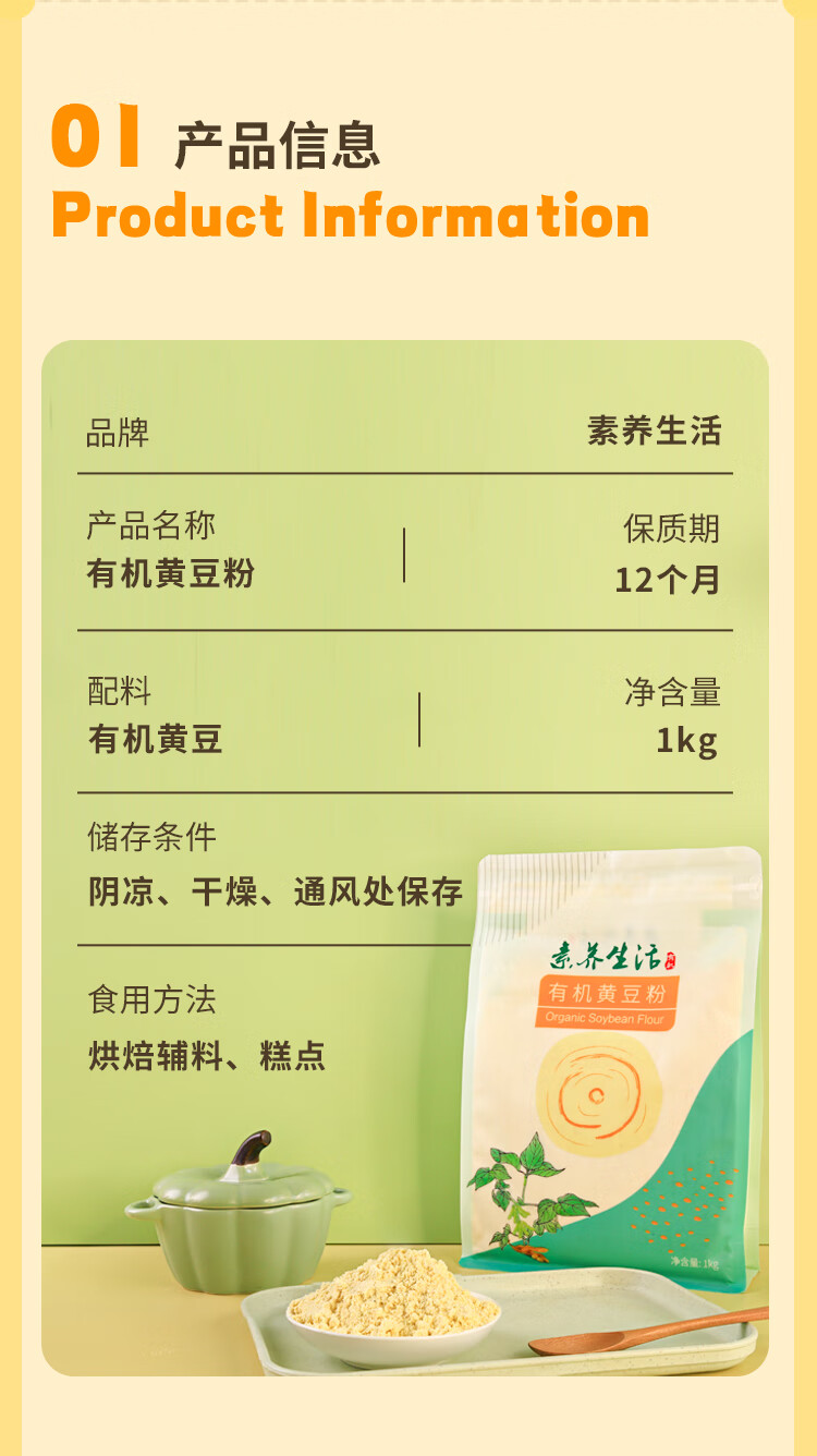 素养生活 有机黄豆粉2斤/袋 石磨碾压纯黄豆面生大豆粉糍粑煎饼果子原料