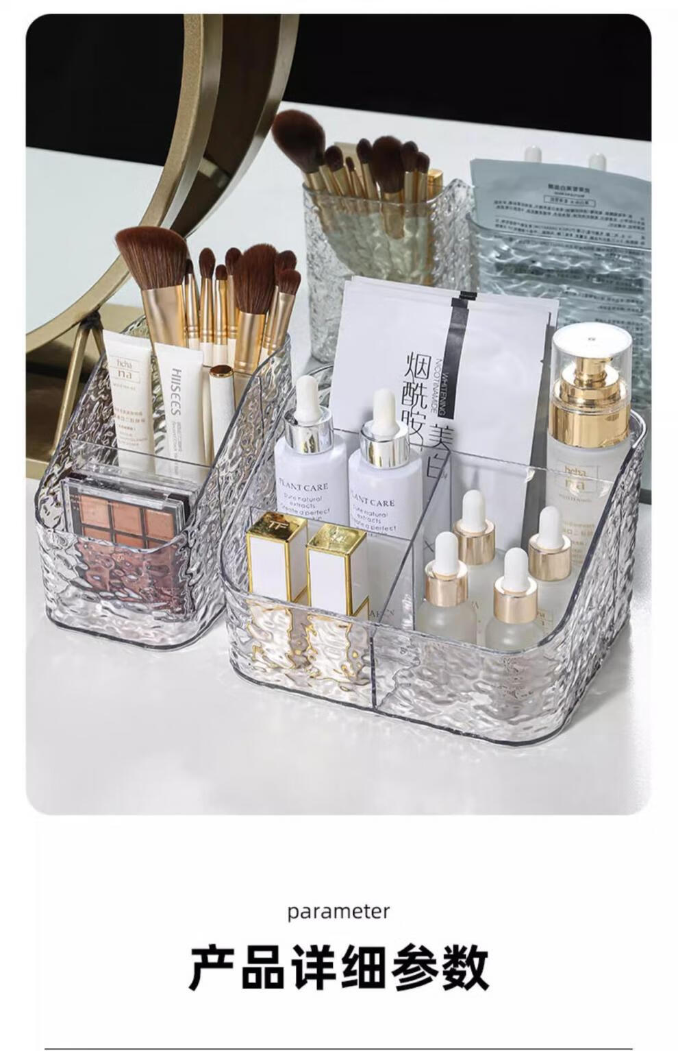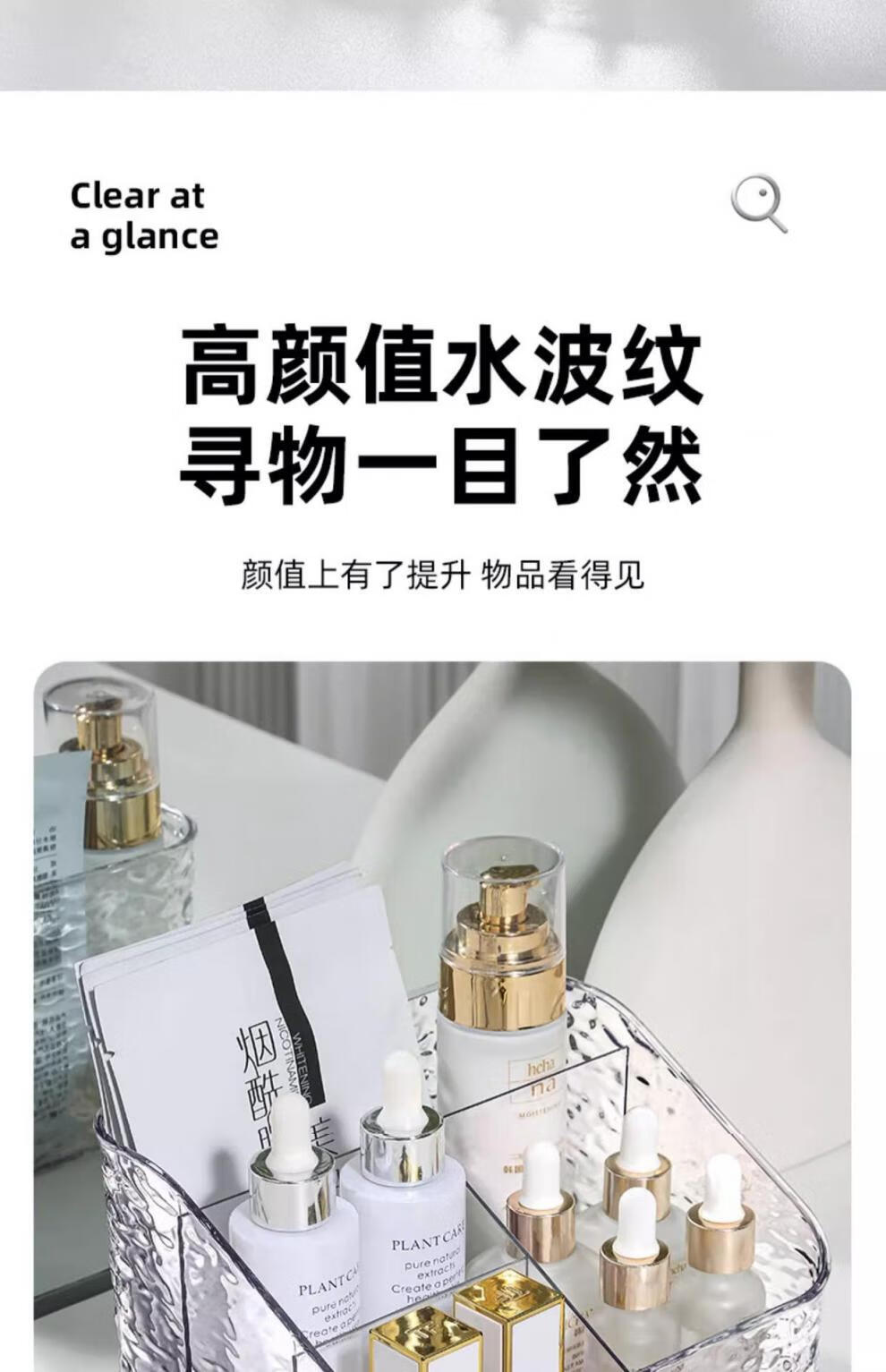 MIKU透明化妆刷收纳盒口红置物架化妆品收纳盒桌面梳妆台护肤品置物架 三格1件