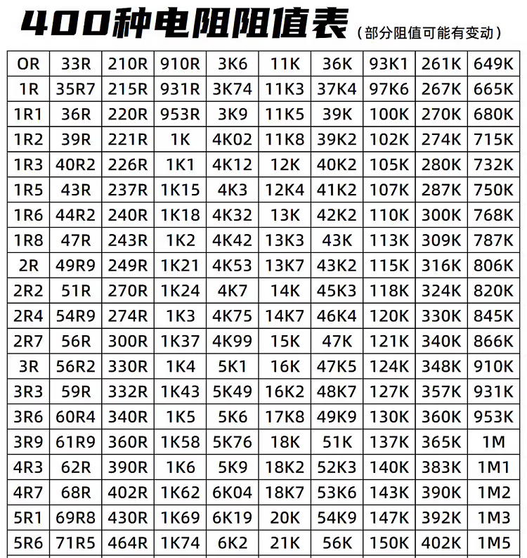 诺然 电阻本 电阻包 电阻器 电阻元件 贴片电阻本 0603电容本90种25只