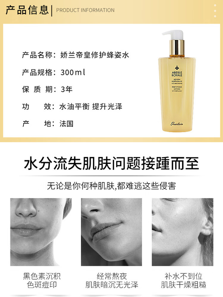 娇兰(Guerlain)帝皇蜂姿蜂皇水精粹液300ml补水保湿精华护肤品