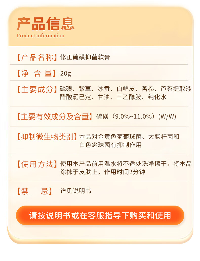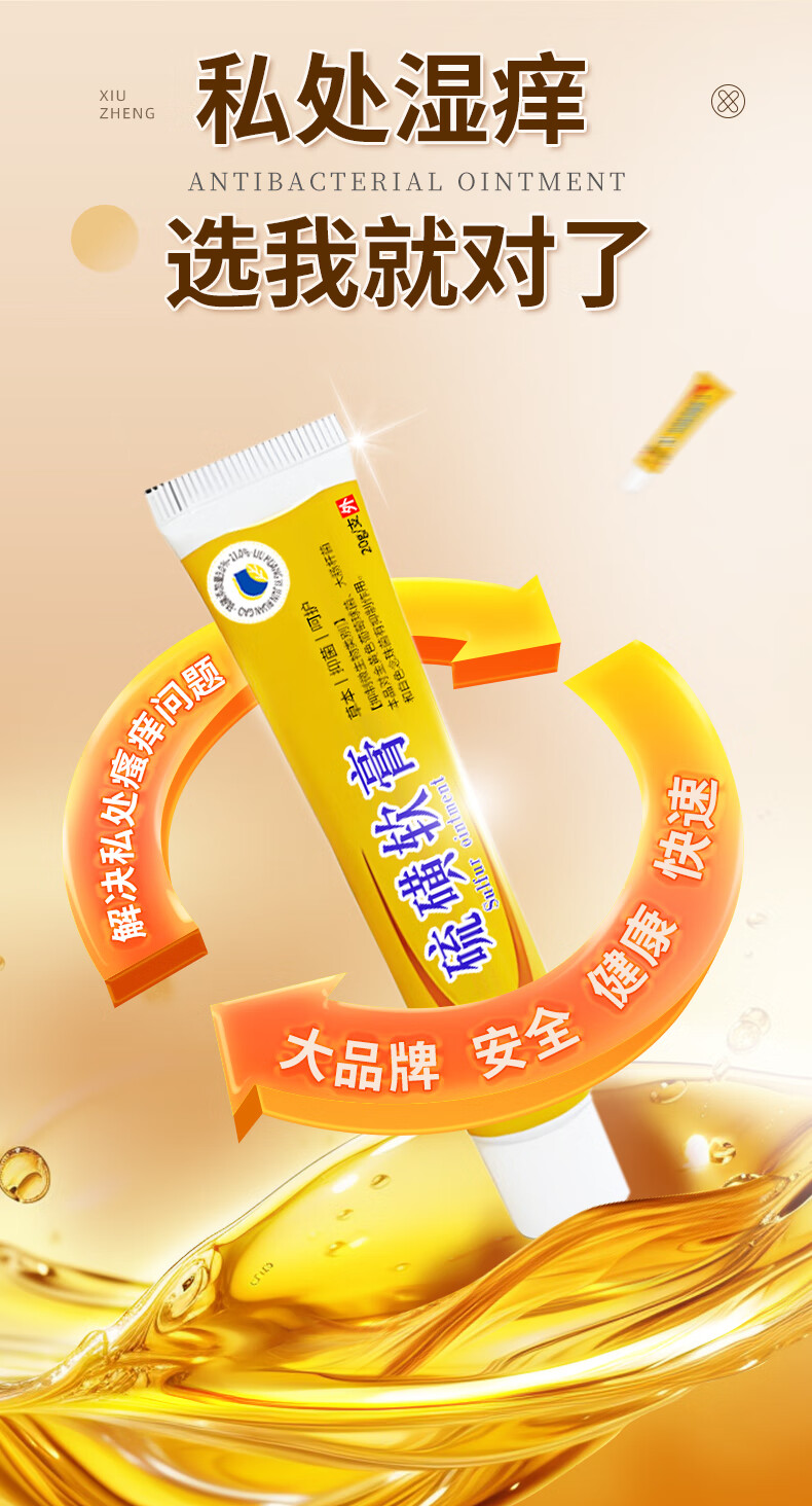 修正硫磺软膏阴虱疥虫专用抑菌膏药男女私处瘙痒止痒抑菌硫磺膏20g