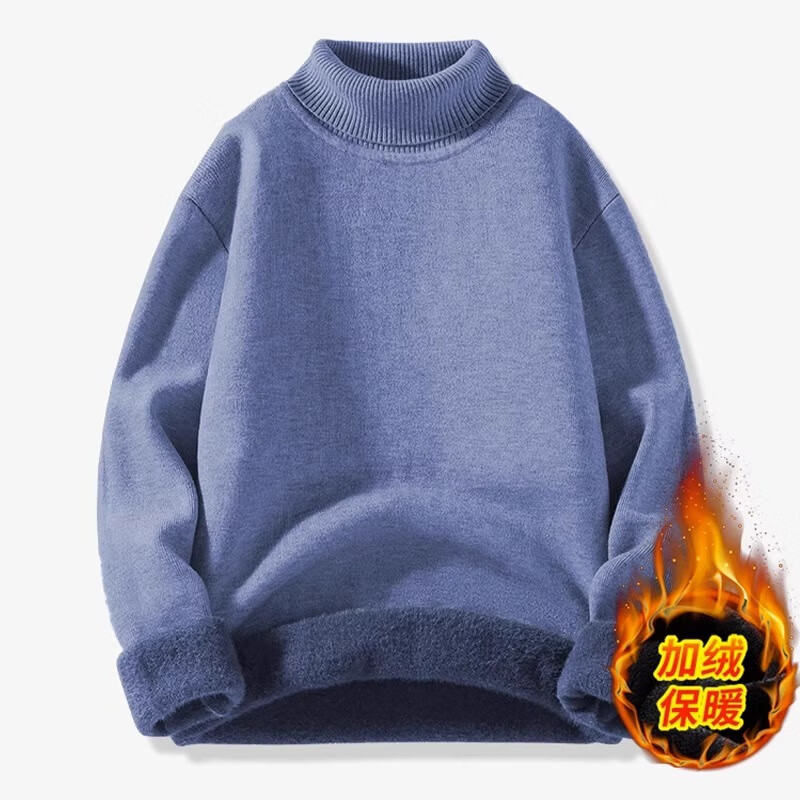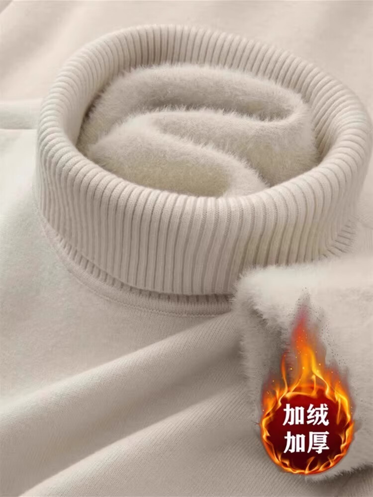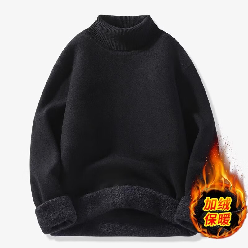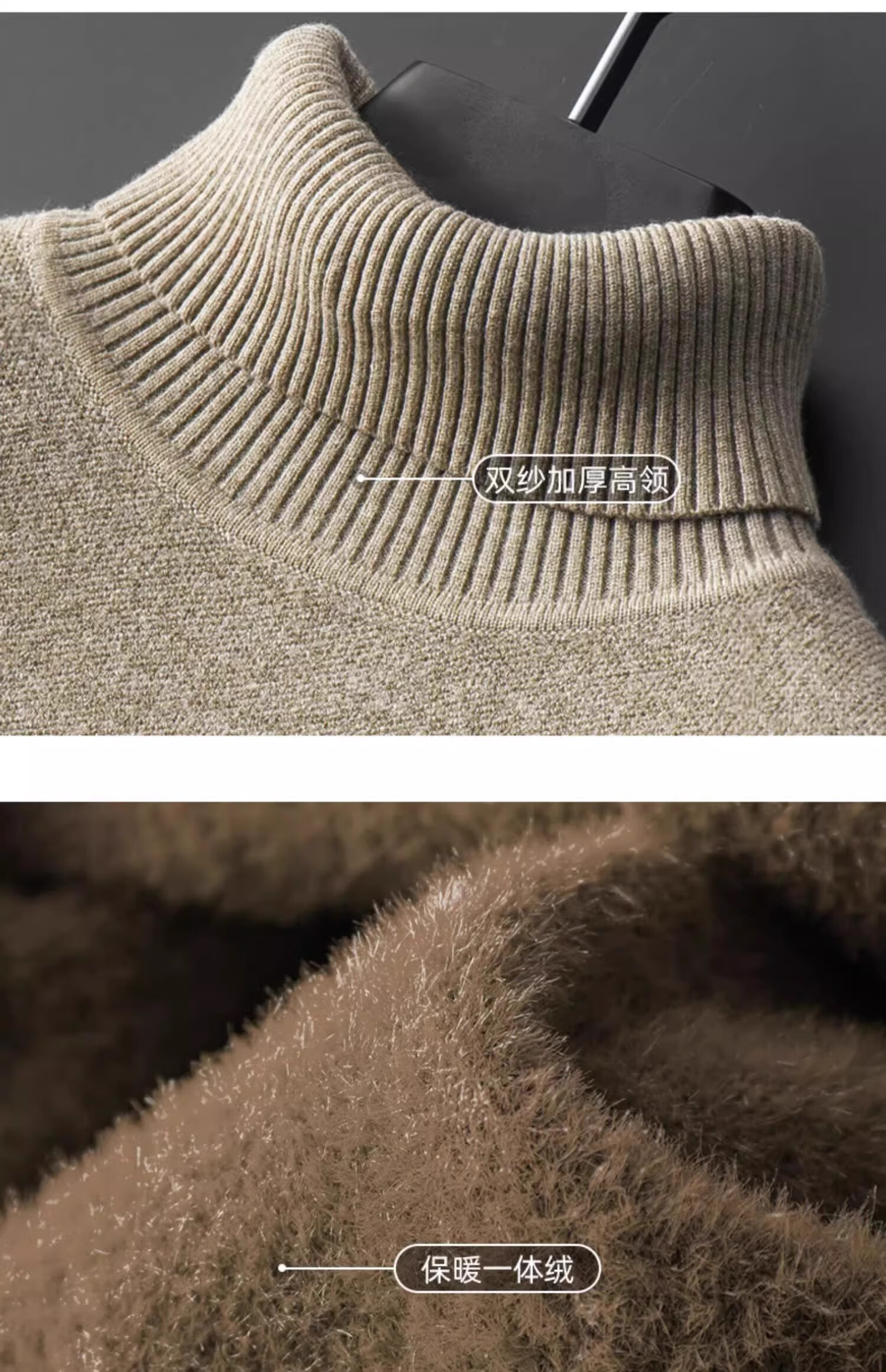 加绒保暖高领一体绒毛衣男秋冬翻领打底针织衫休闲上衣厚商务 【加绒】369高领毛衣-驼色 L 110-130斤