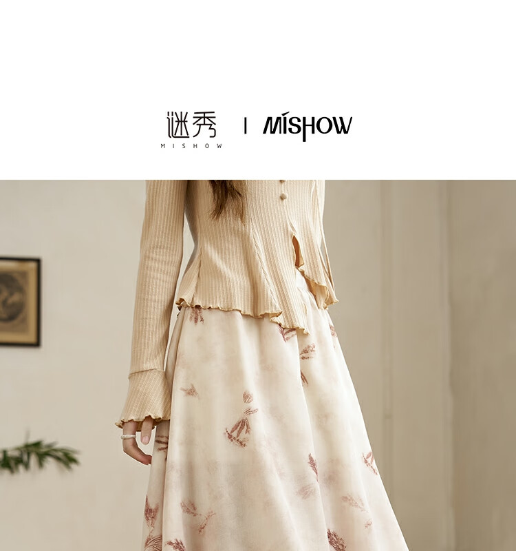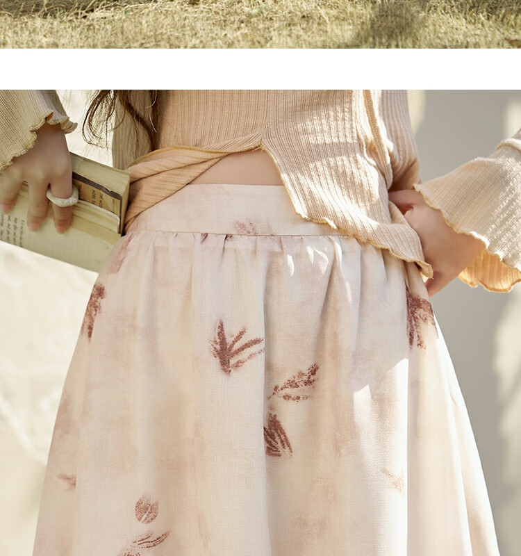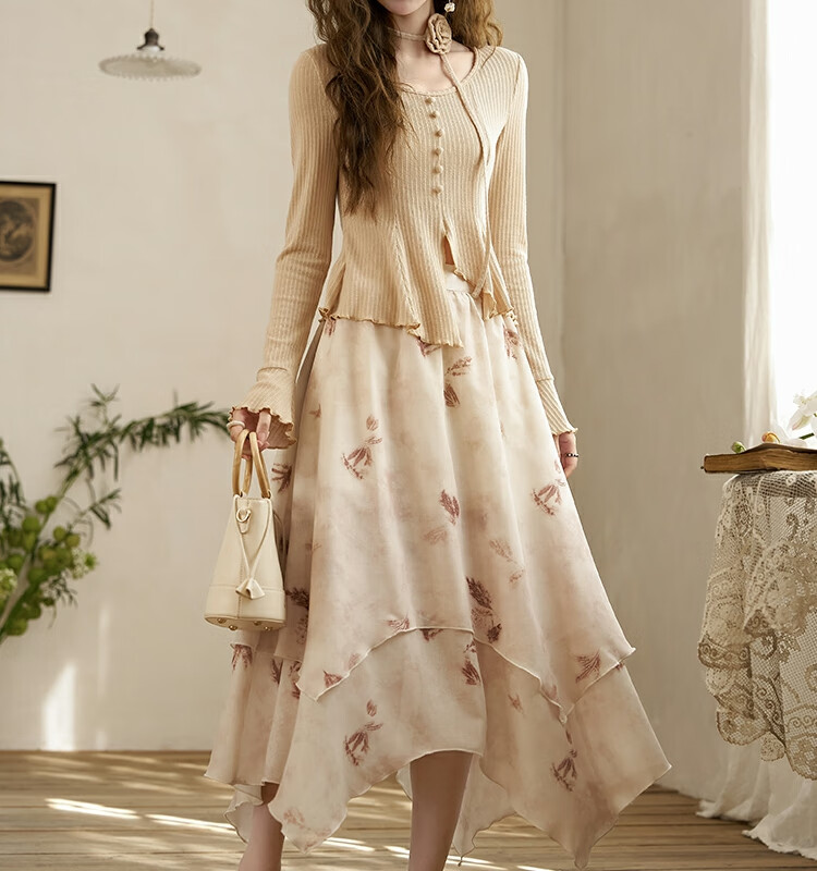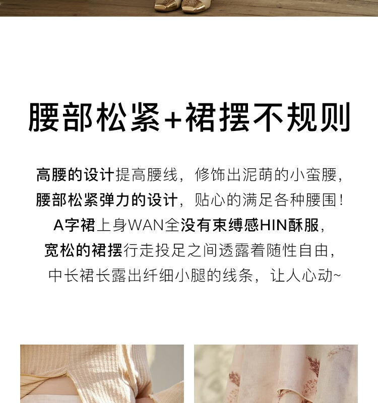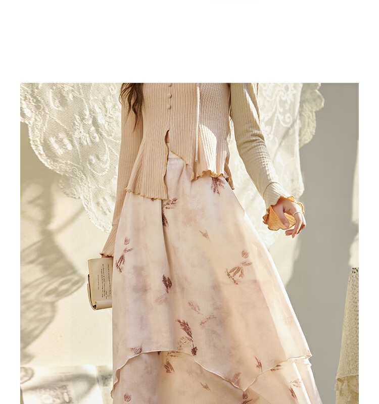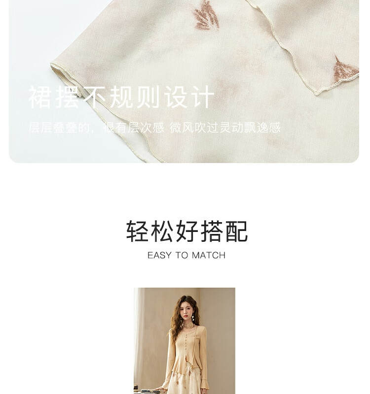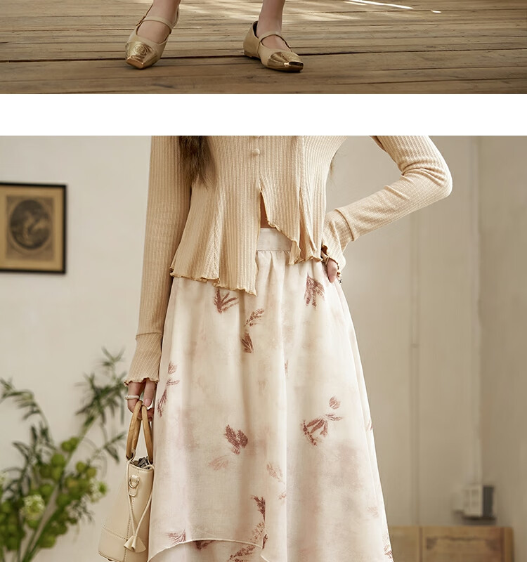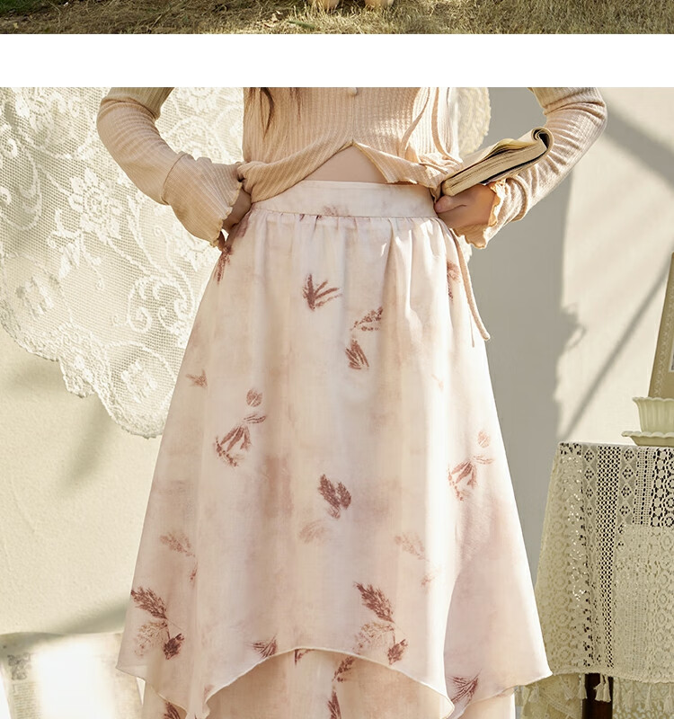 谜秀设计感不规则半身裙女装2025春秋季新款腰显瘦A字裙花长裙 杏色 半身裙 M