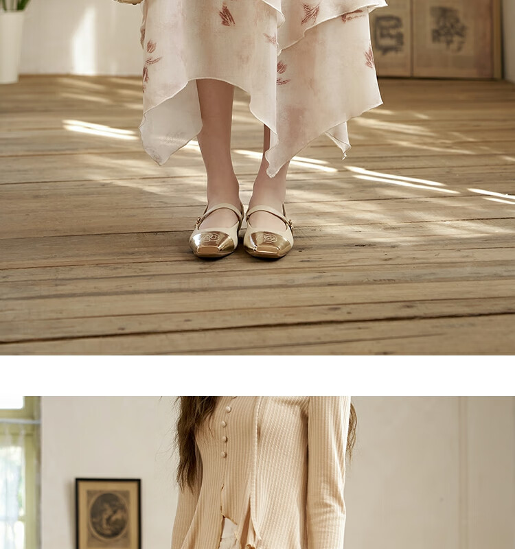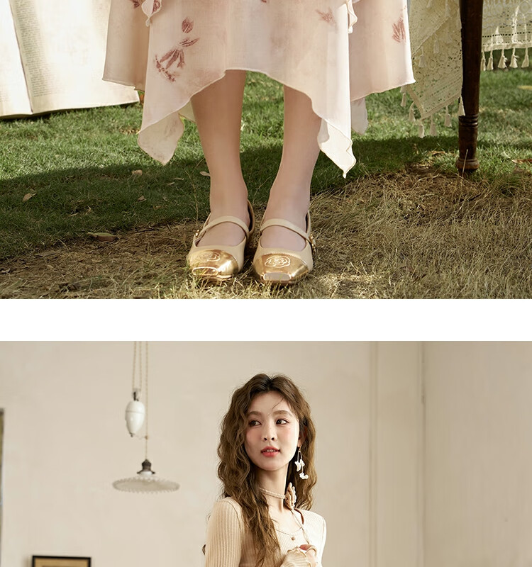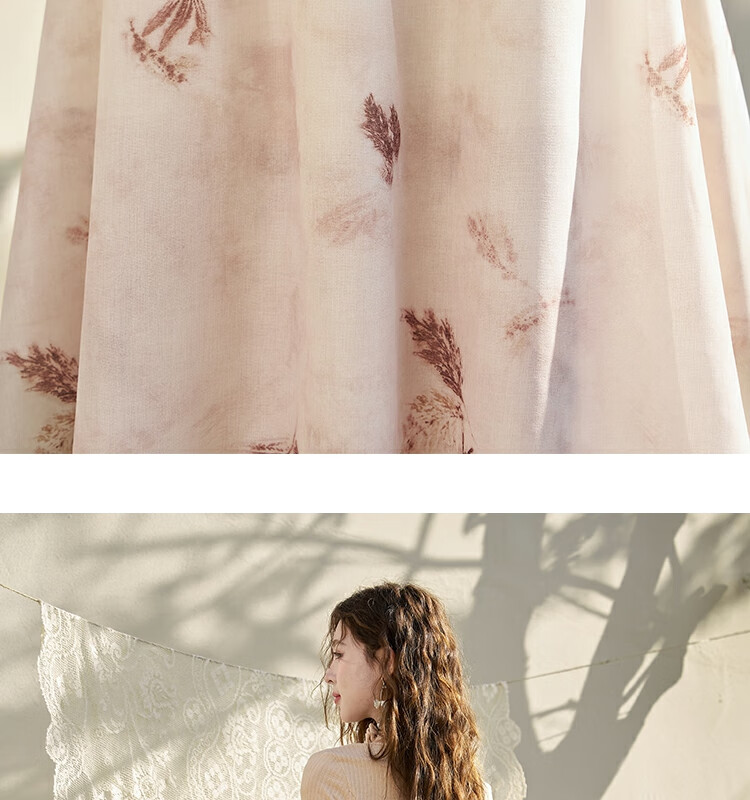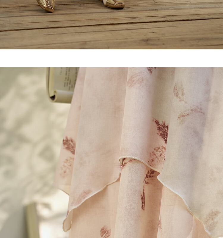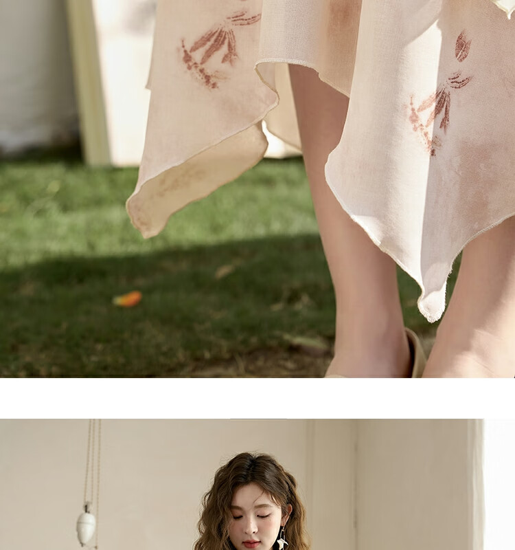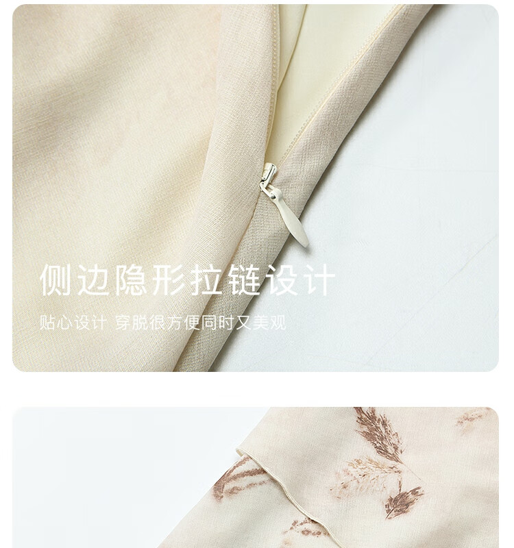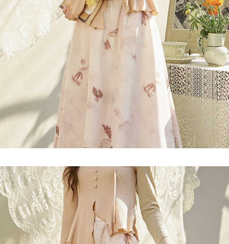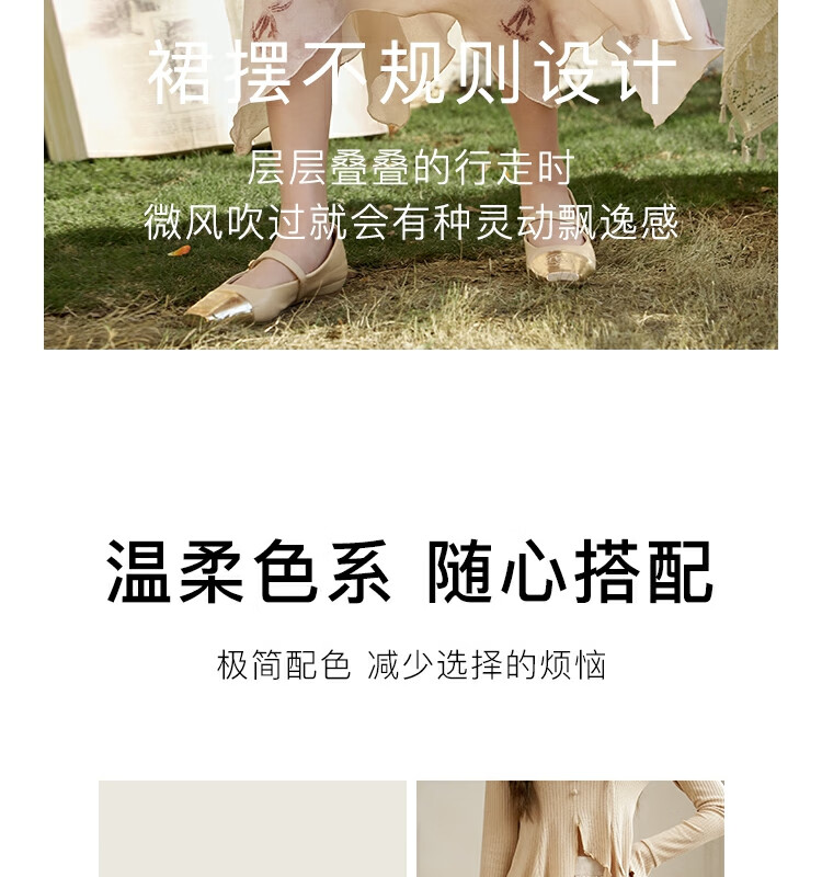谜秀设计感不规则半身裙女装2025春秋季新款腰显瘦A字裙花长裙 杏色 半身裙 M